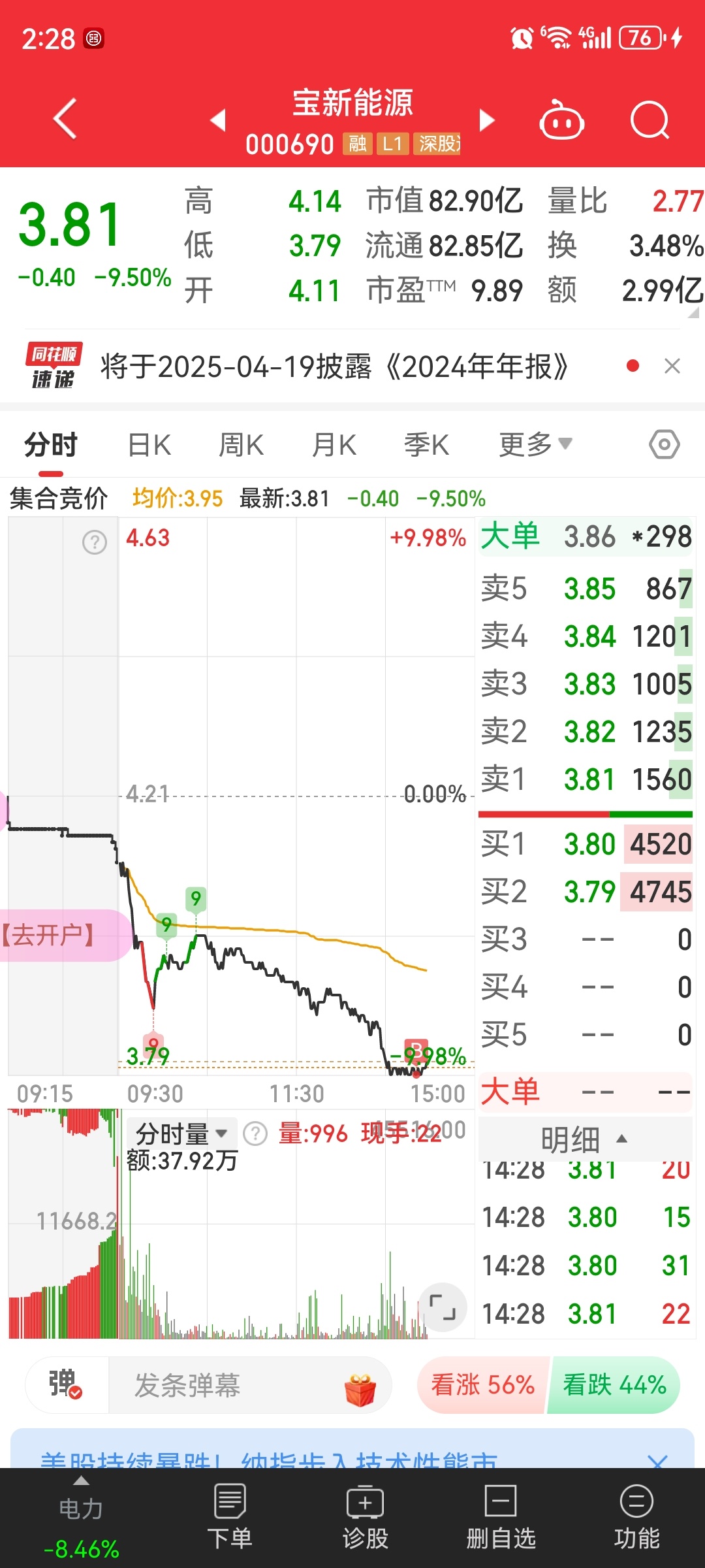 $宝新能源(SZ000690)$ 任凭风浪起,坐稳钓鱼台,坚决持仓,一股不卖。