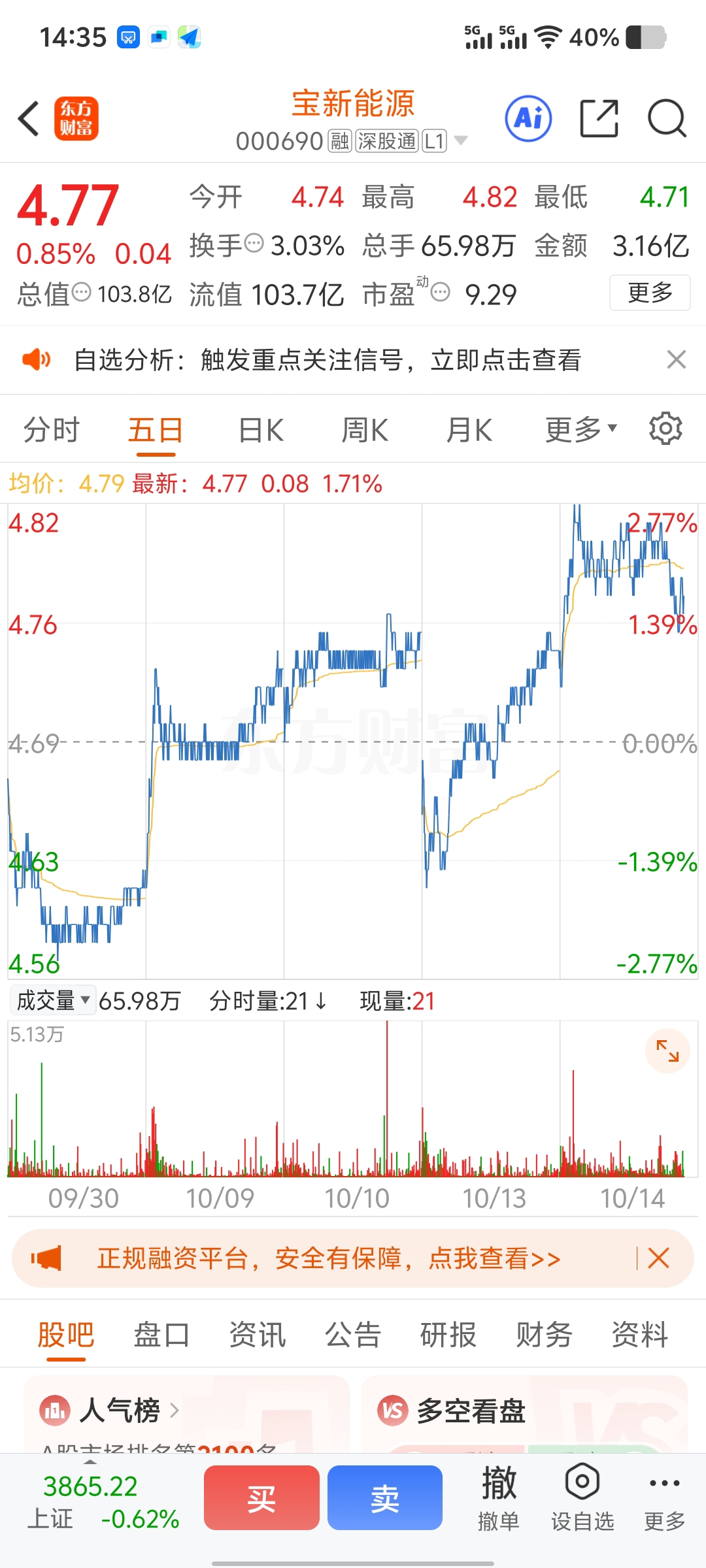 $宝新能源(SZ000690)$ 5日K线持续上涨在干吗?????????