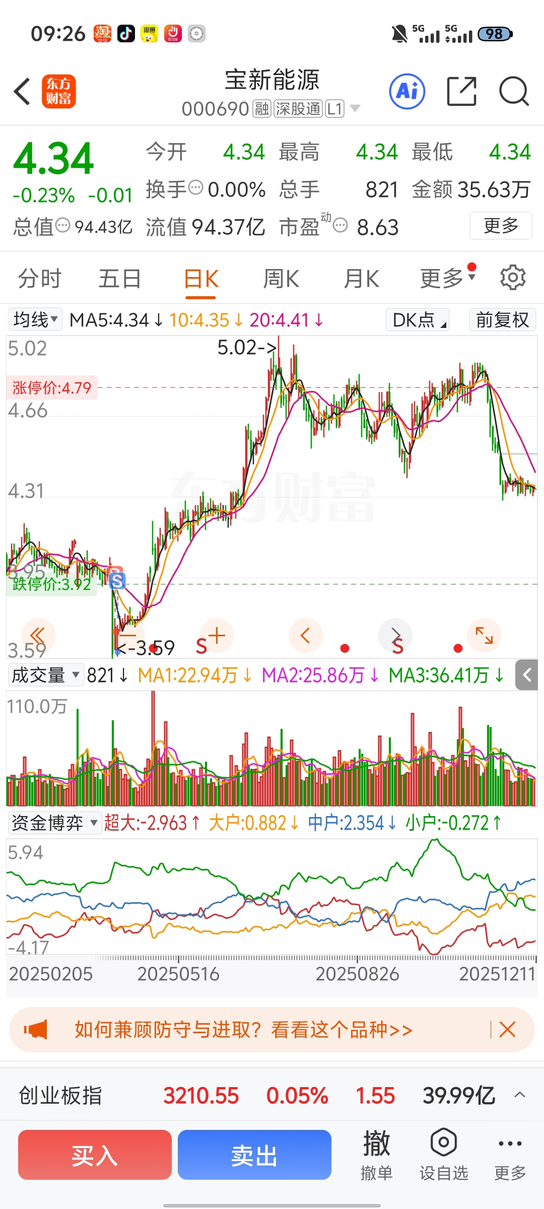 $宝新能源(SZ000690)$ 为啥每次都是我买的票拿不住割了它就开始大涨 唯独拿住的不涨呢