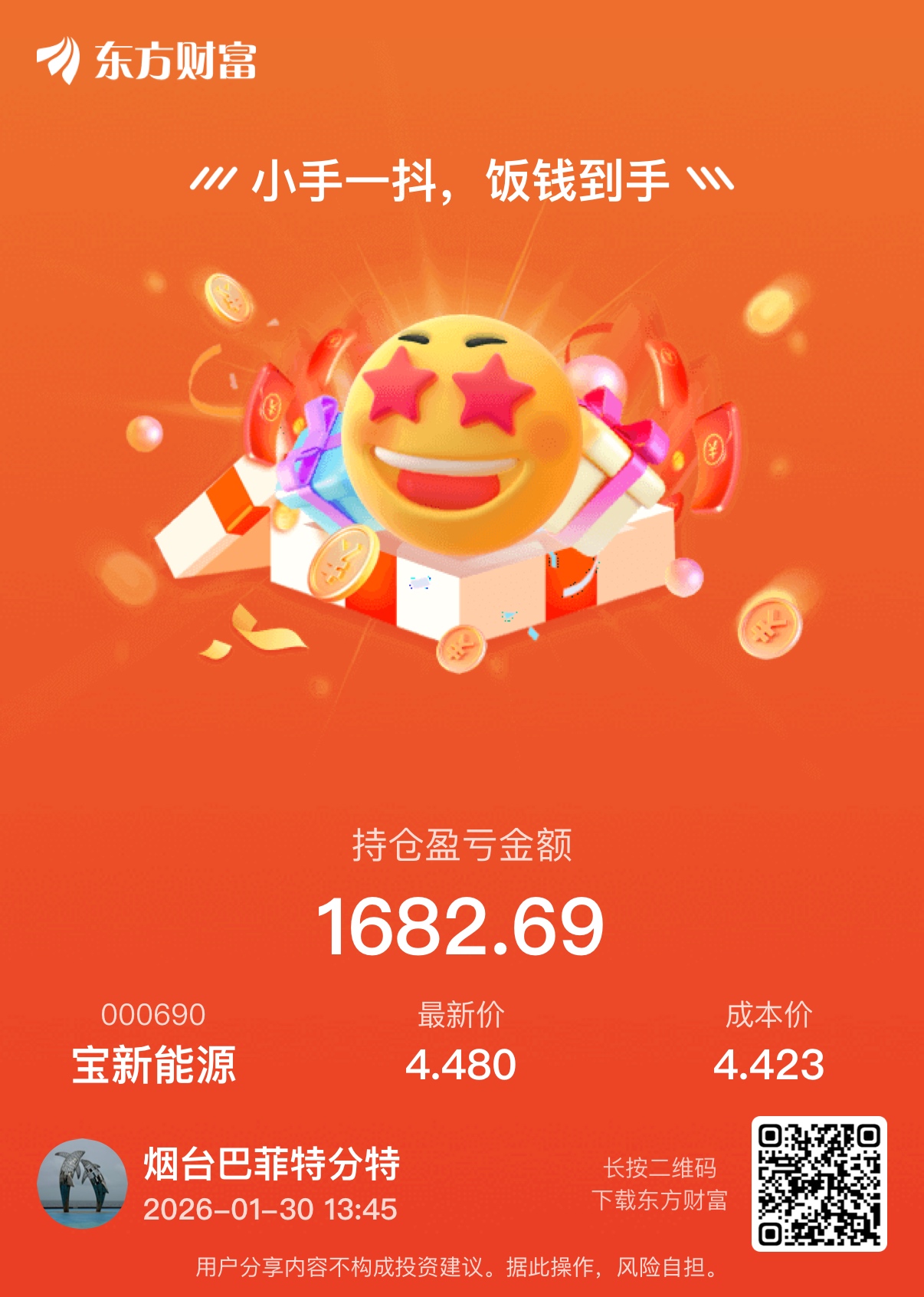 温馨提示: 1.根据《证券法》规定,禁止编造、传播虚假信息或者误导性信息,扰乱证券市场;2.用户在本社区发表的所有资料、言论等仅代表个人观点,与本网站立场无关,不对您构成任何投资建议。用户应基于自己的独立判断,自行决定证券投资并承担相应风险。《东方财富社区管理规定》