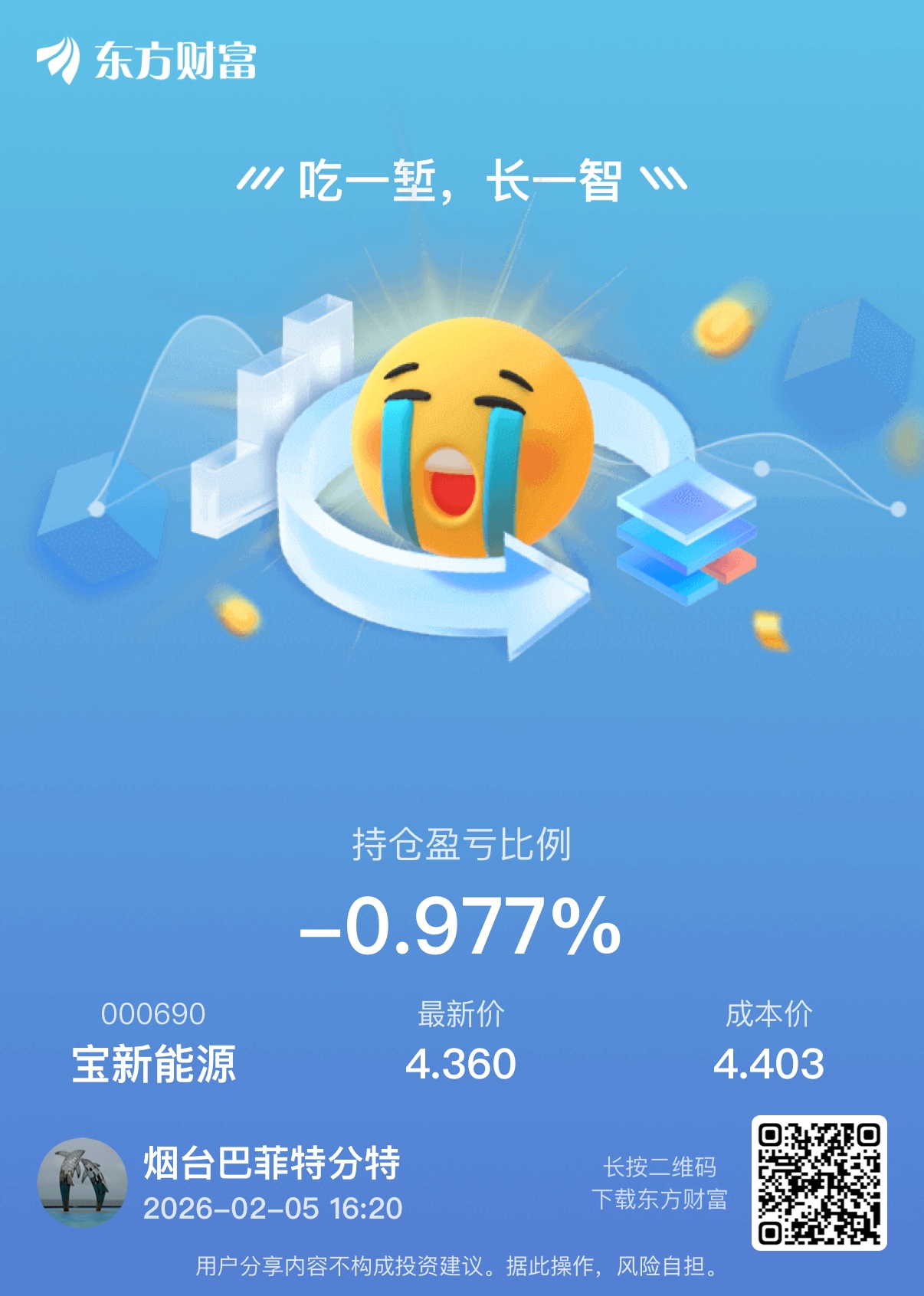 温馨提示: 1.根据《证券法》规定,禁止编造、传播虚假信息或者误导性信息,扰乱证券市场;2.用户在本社区发表的所有资料、言论等仅代表个人观点,与本网站立场无关,不对您构成任何投资建议。用户应基于自己的独立判断,自行决定证券投资并承担相应风险。《东方财富社区管理规定》