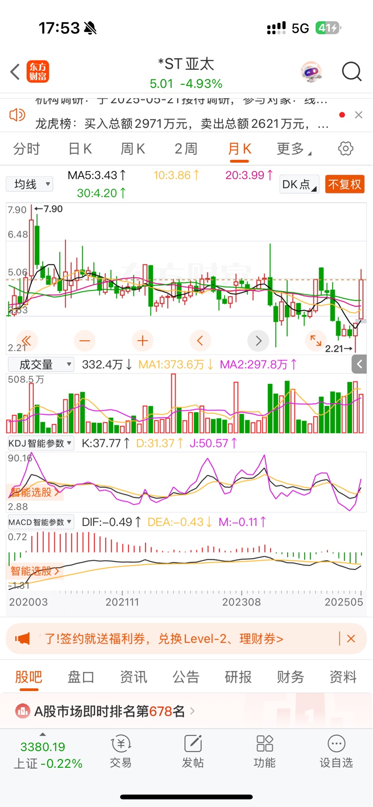 $*ST亚太(SZ000691)$ 亚太昨天龙虎榜第五席位今天去了加加,亚太短期应该需要回调了,各位注意风险,短期回调