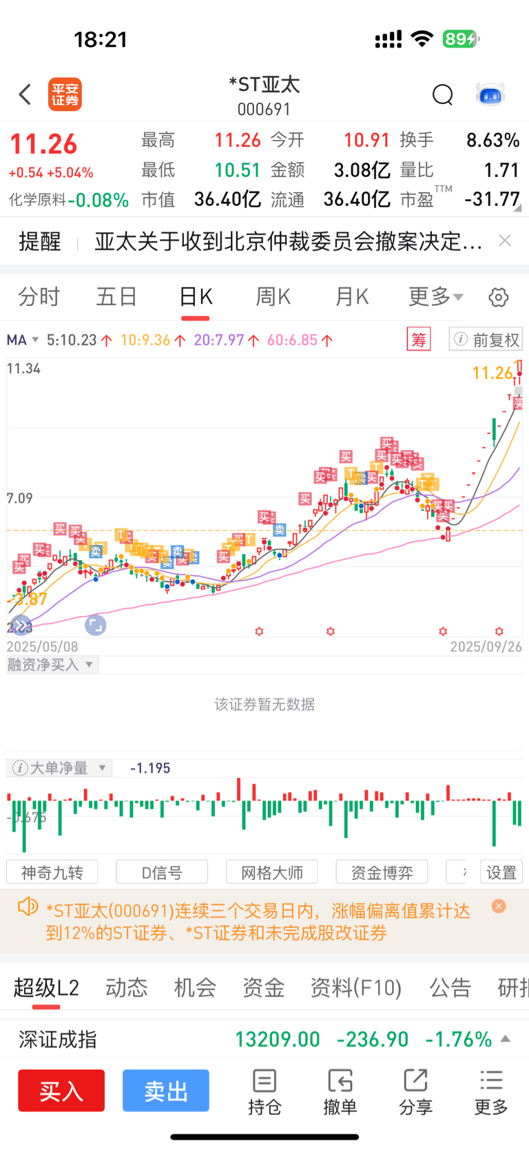 $*ST亚太(SZ000691)$ 继续加仓!太子从4月到现在谁懂啊家人们跟想象一样!每次换手必有利好!撤销仲裁申请!11月中前开了就加仓!作为一个过来人不要做T!!不要做T!一不小心就飞了!!一年就做这一只妖!