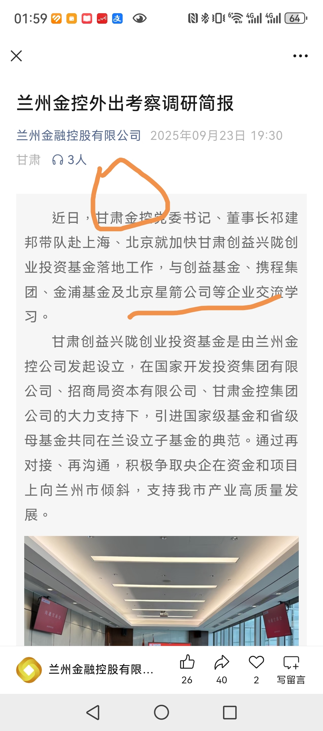 财投是兰州金控,这次出去考察的牵头单位是甘肃省金控