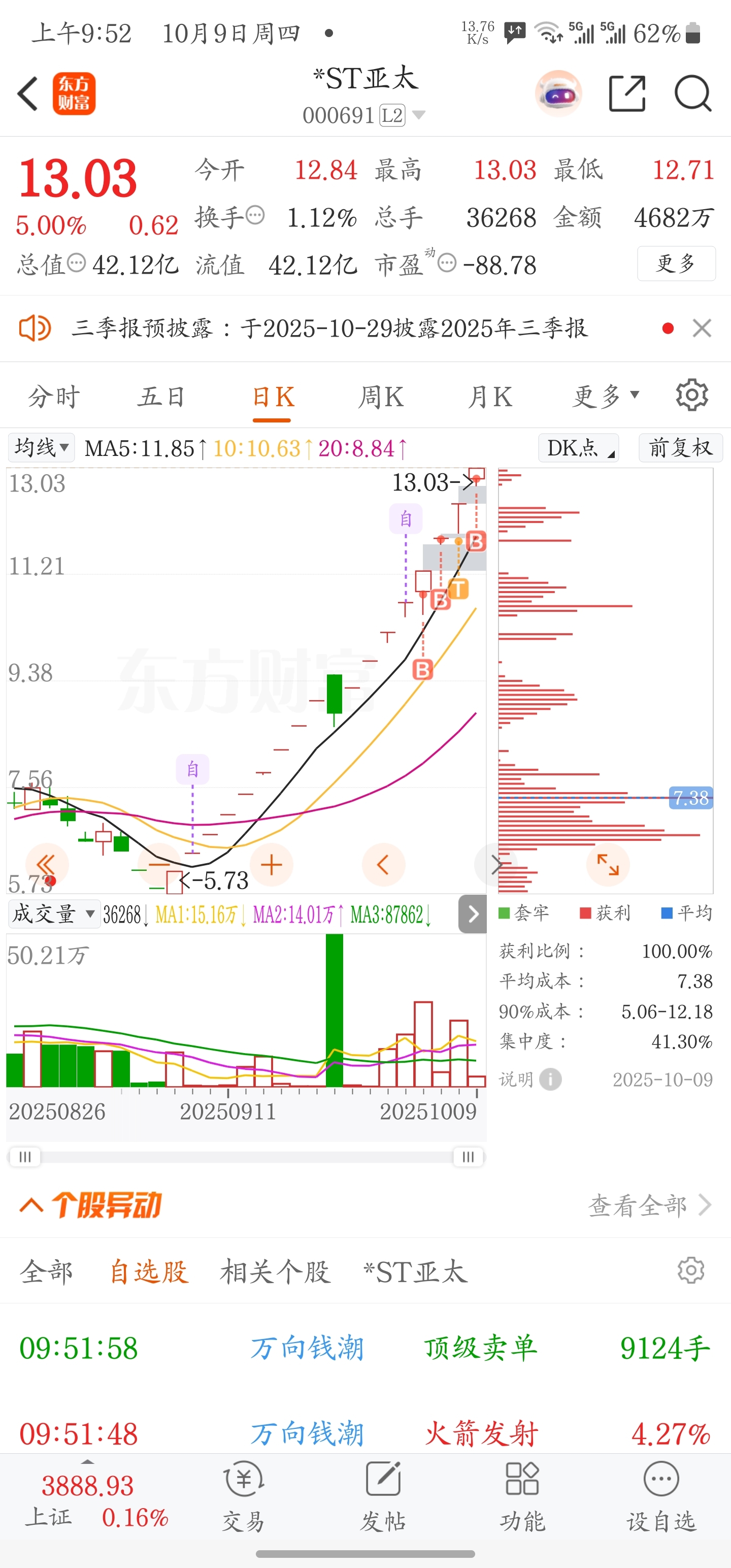 $*ST亚太(SZ000691)$ 相信所以25分就挂单了