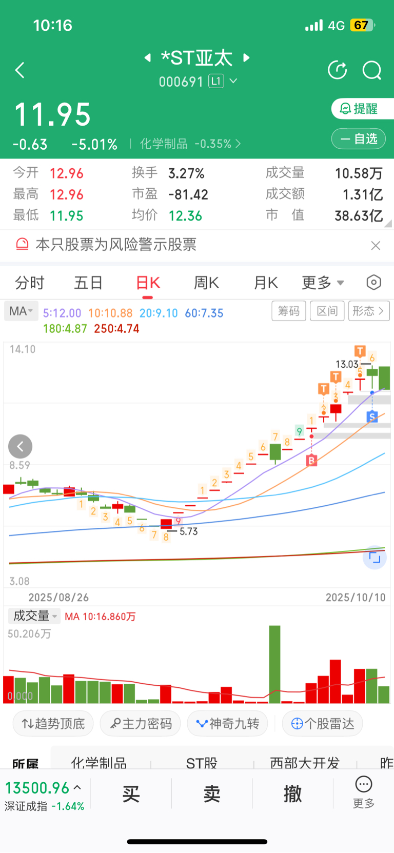 $*ST亚太(SZ000691)$ 历史总是那么相似。不管正股还是ST都是一个德行。终将退出舞台给后辈了。我不会看公告。我不会像大V那样长篇大论的说一堆公告的屁话。我只懂技术。我也看情绪和周期。宇顺周期确定结束!!老大宇顺(捷荣技术)老二亚振(圣龙股份)老三亚太(天龙股份)别问我为什么知道。我当时就是玩的是正股!只是现在确定要玩ST了。一代的周期为后辈留出空间吧。祝福宇顺周期的圆满结束!