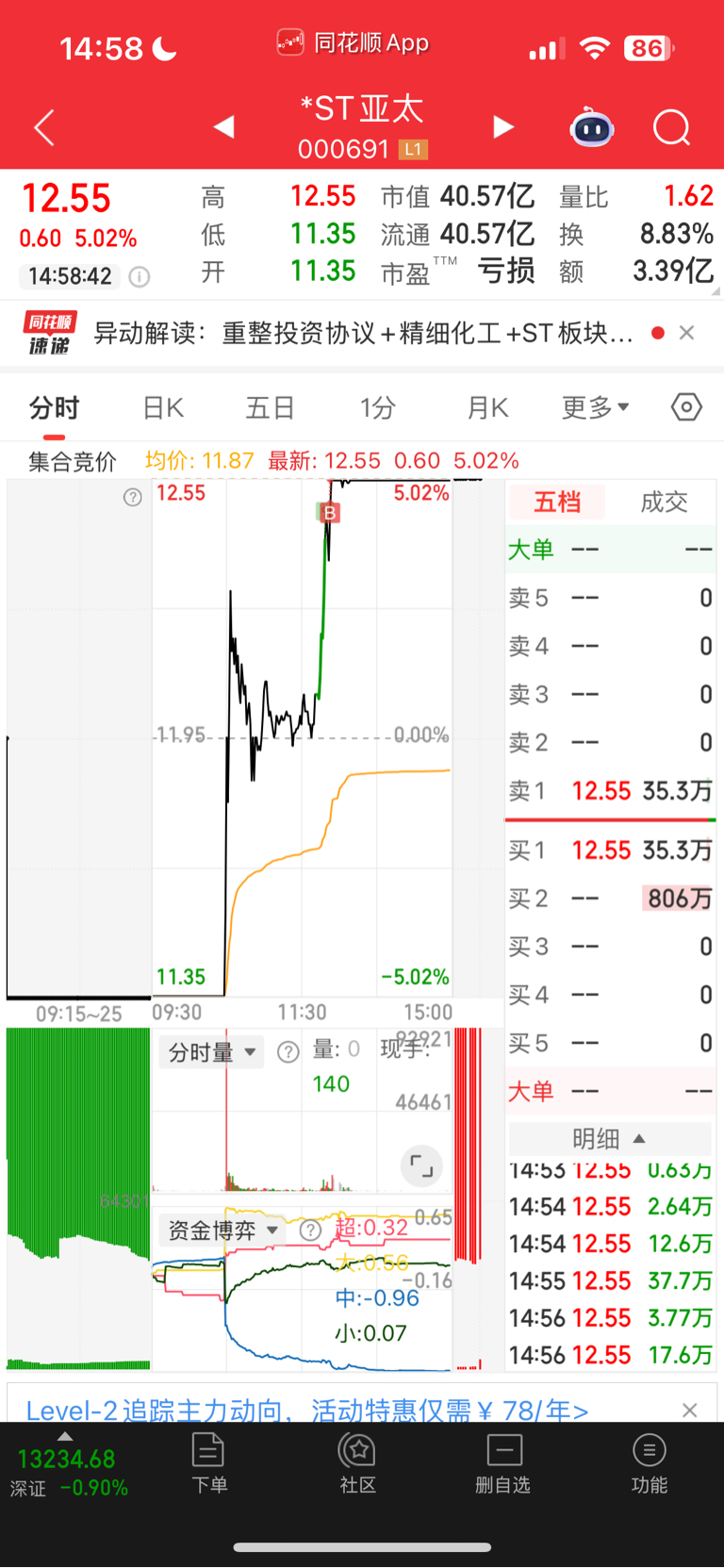 $*ST亚太(SZ000691)$ 排了一上午东易没指望,只能接回亚太