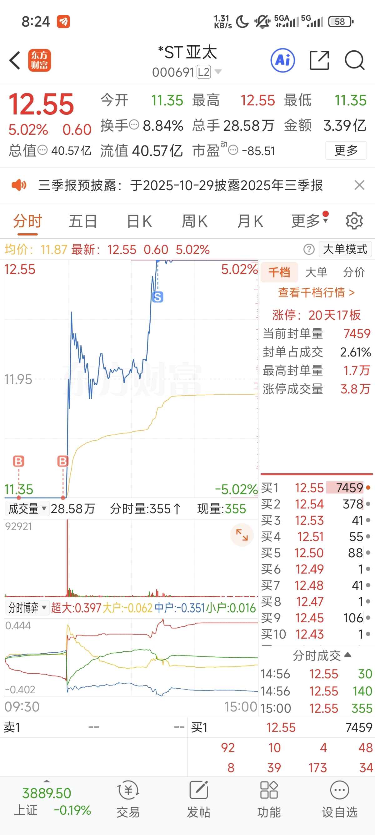 $*ST亚太(SZ000691)$ 做做t,真爽,昨天今天地板接了,涨停出了昨天的货,明天给机会再进,不给机会就把底留着,反正不管怎么样,底不动,浮赢去做t
