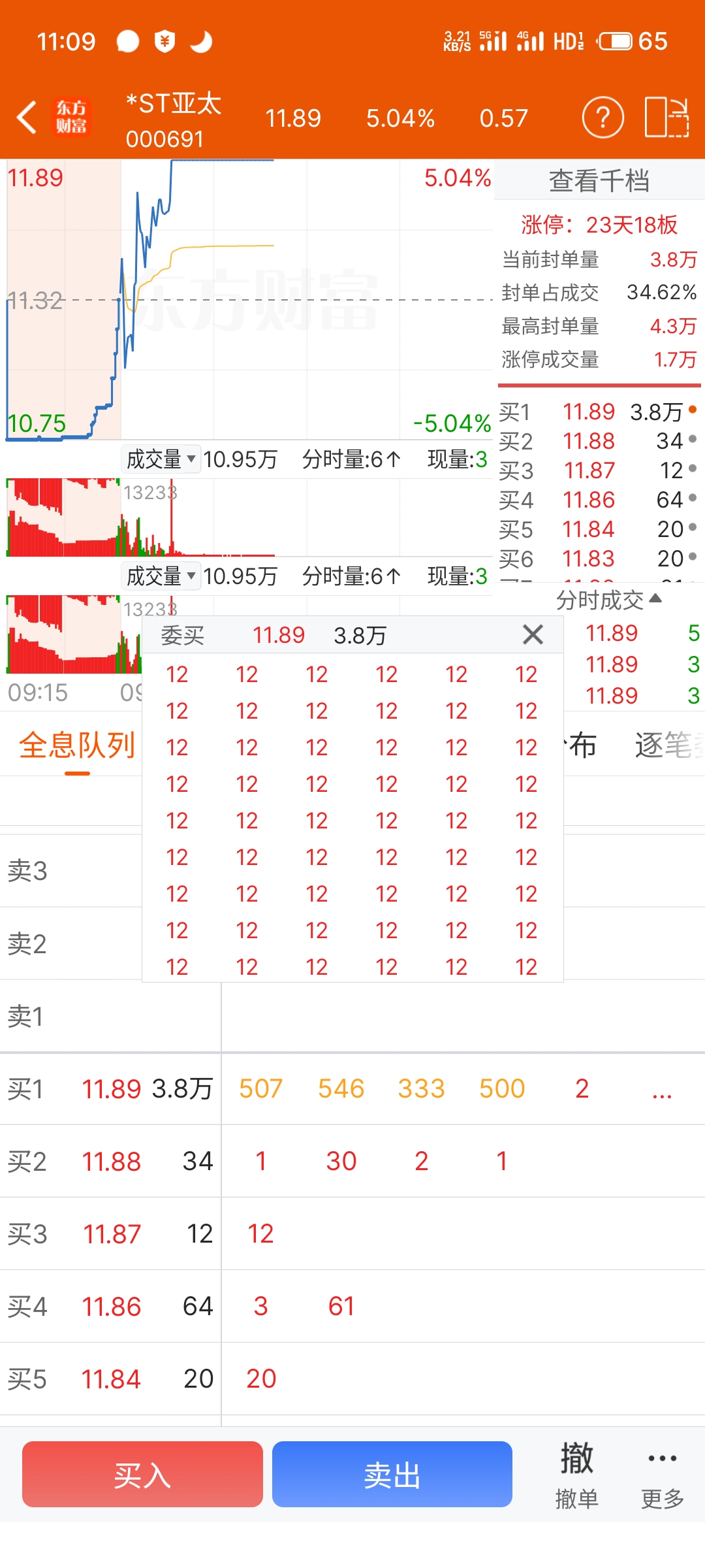 $*ST亚太(SZ000691)$ 我卡了吗?怎么后面全是12?意思是明天上12还是12到顶?
