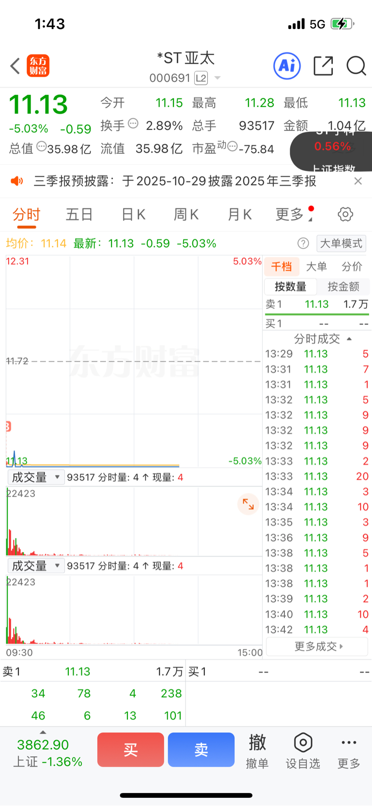 $*ST亚太(SZ000691)$ 这下歇菜了,开盘又补仓了