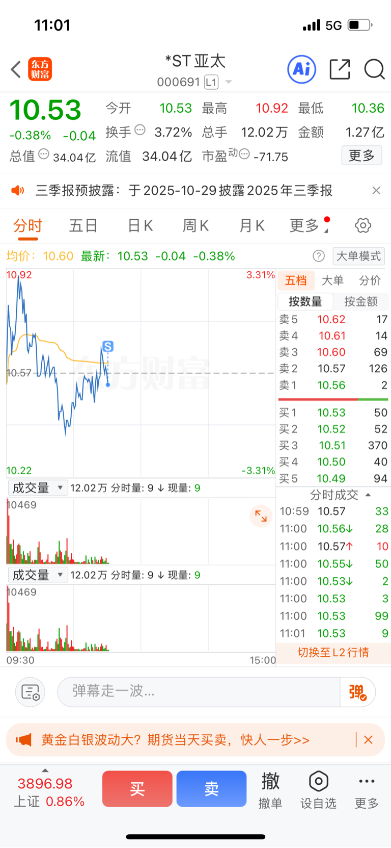 $*ST亚太(SZ000691)$ 卖了,可以涨了