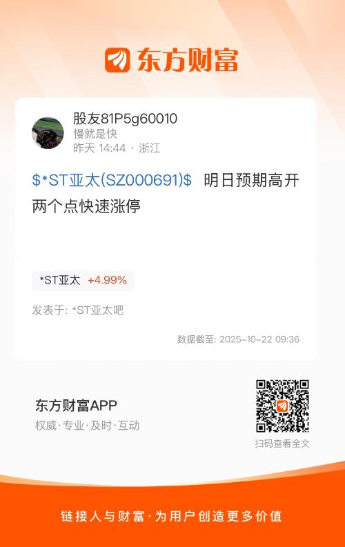 $*ST亚太(SZ000691)$  明日预期高开两个点快速涨停