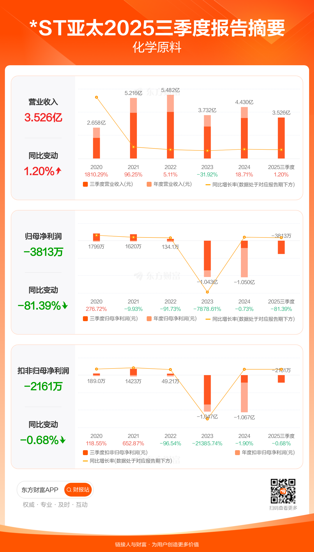图解财报:*ST亚太前三季归母净利润-3813.48万元,上年同期-2102.31万元