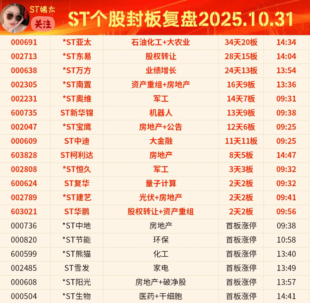 ST个股封板追踪:A组