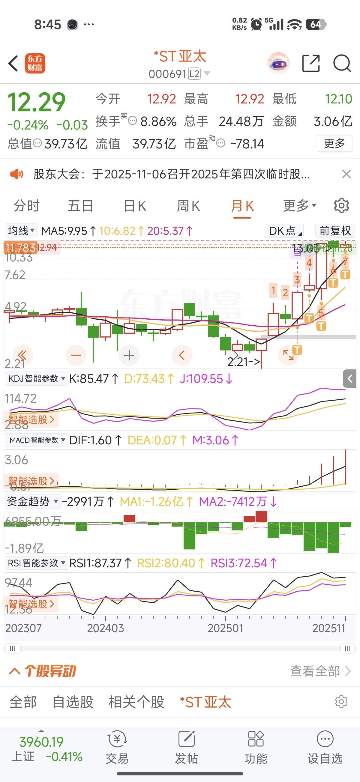 来回T了几个月,一看这股吧里唱空与唱多我就忍不住想笑。赚与亏就是心理的承受能力,技术数据只占一小部分,你所看到的信息面,技术走势,和你想买想卖的心理不是成正比的,也极少有人能做到这些。一百个人有一百种炒股思路,股吧里的风气会影响一些人的判断。所谓唱多唱空者必有它掩藏的小心思。不用去在意,根据自己的思路走就行了。