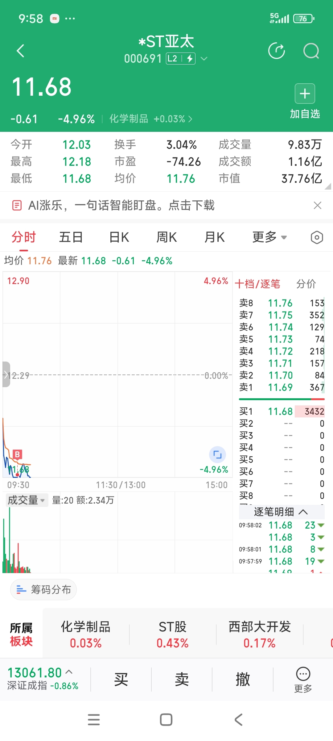 $*ST亚太(SZ000691)$ 交出你们的筹码,我要唱空了。