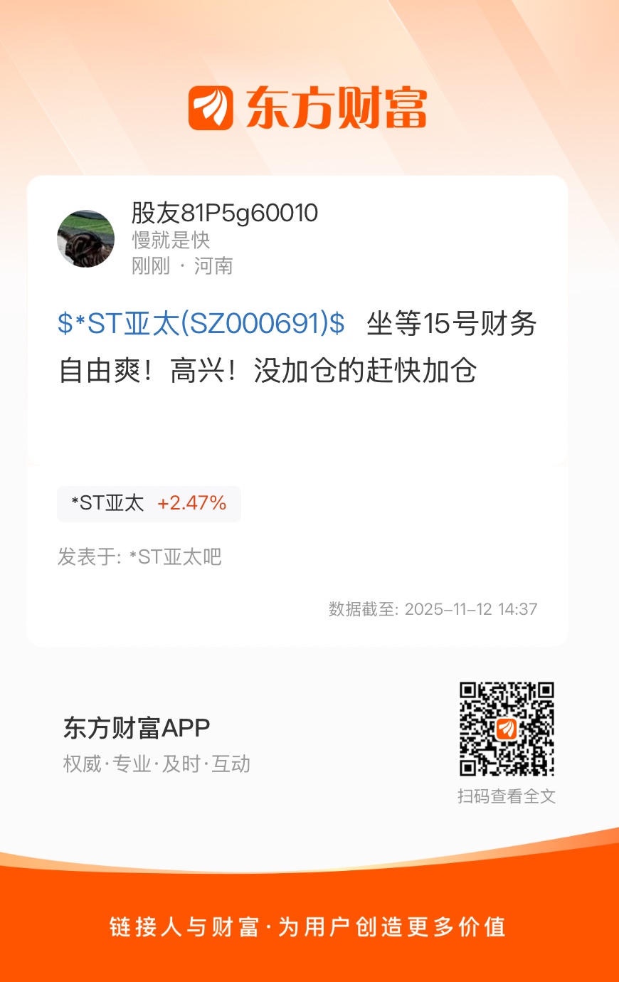 $*ST亚太(SZ000691)$  坐等15号财务自由爽!高兴!没加仓的赶快加仓