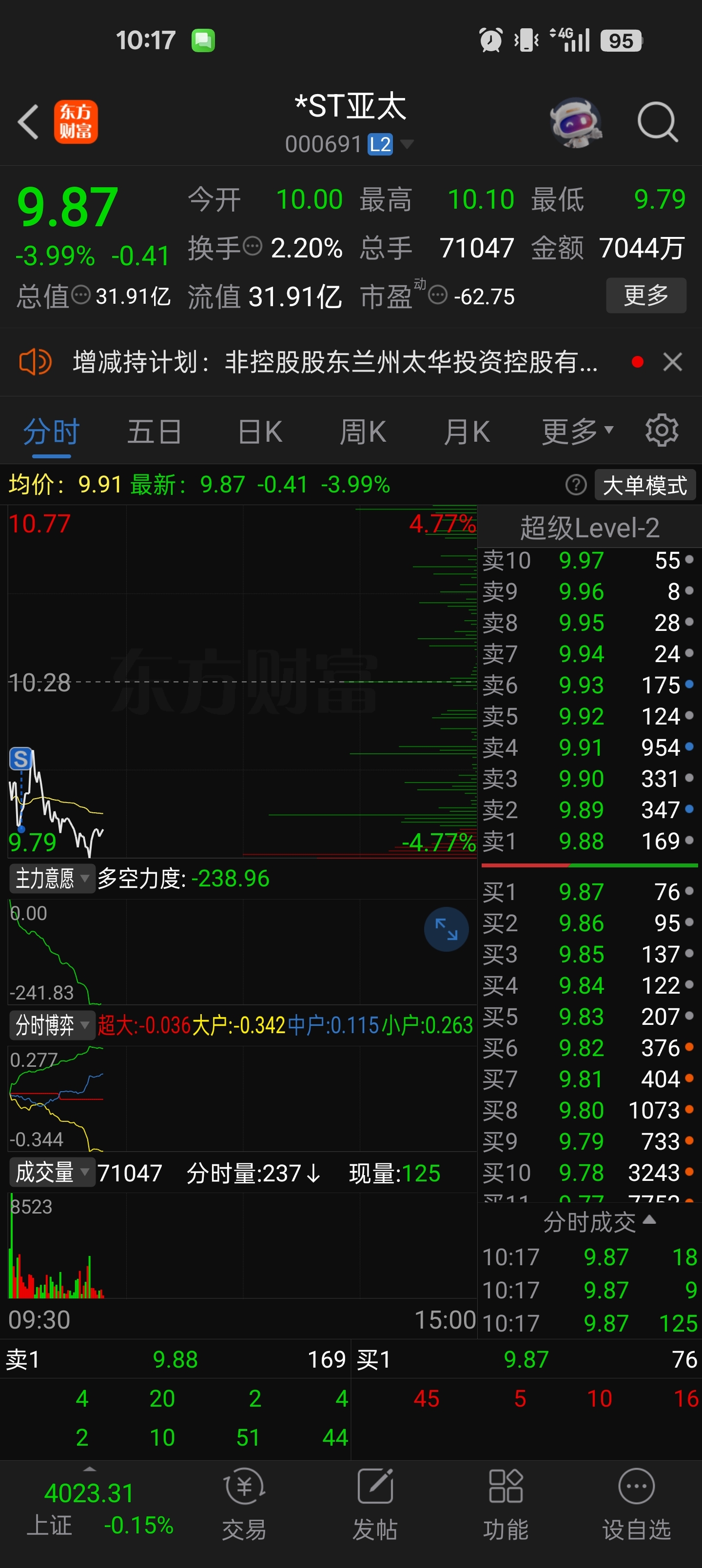 $*ST亚太(SZ000691)$ 你快去逆嘛的吧!!从满仓赚20点到半仓亏损15点离场,去景峰打板去了,苟砸总你成功把你蝶洗出去了,你可以拉板了