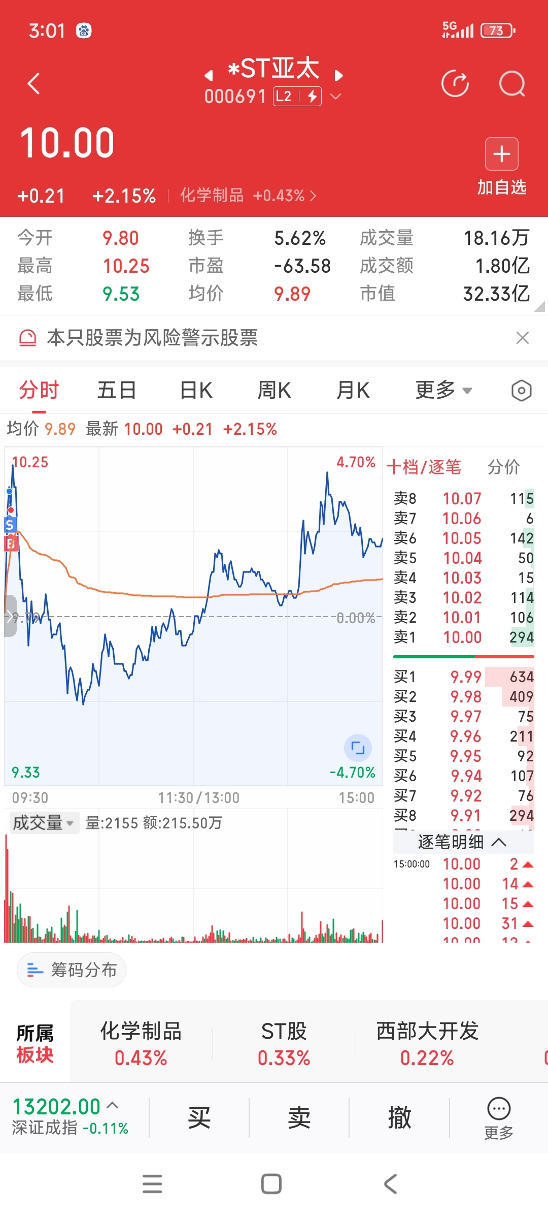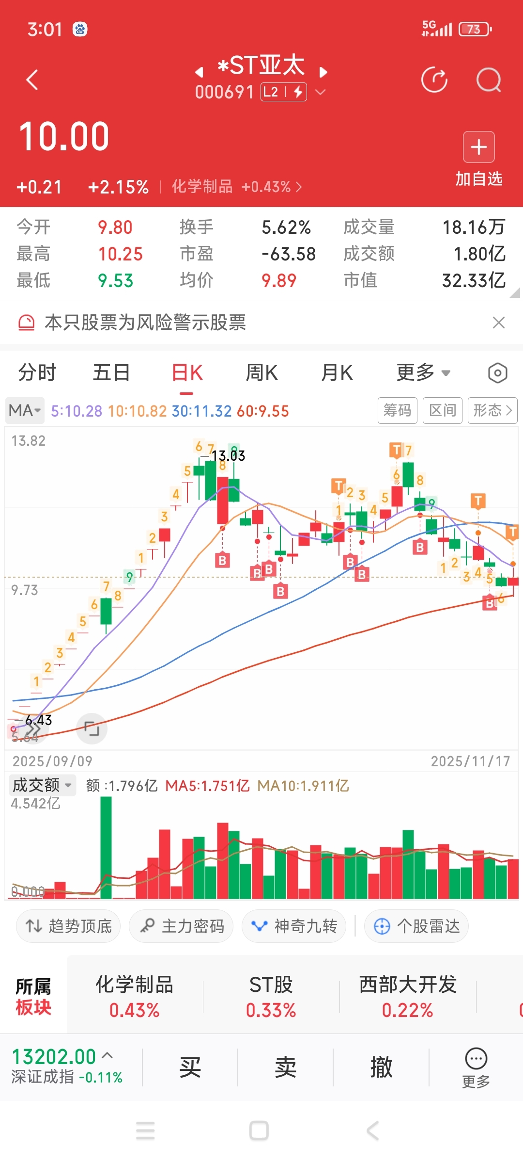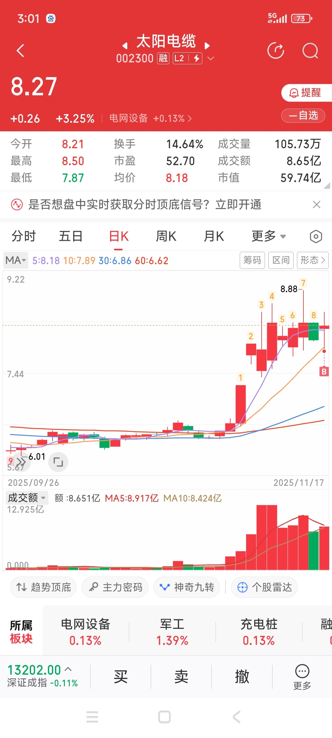 ST亚太仓位基本清完,留了个迷你仓,和贴吧兄弟坚守。在正股回血,开新仓太阳电缆,