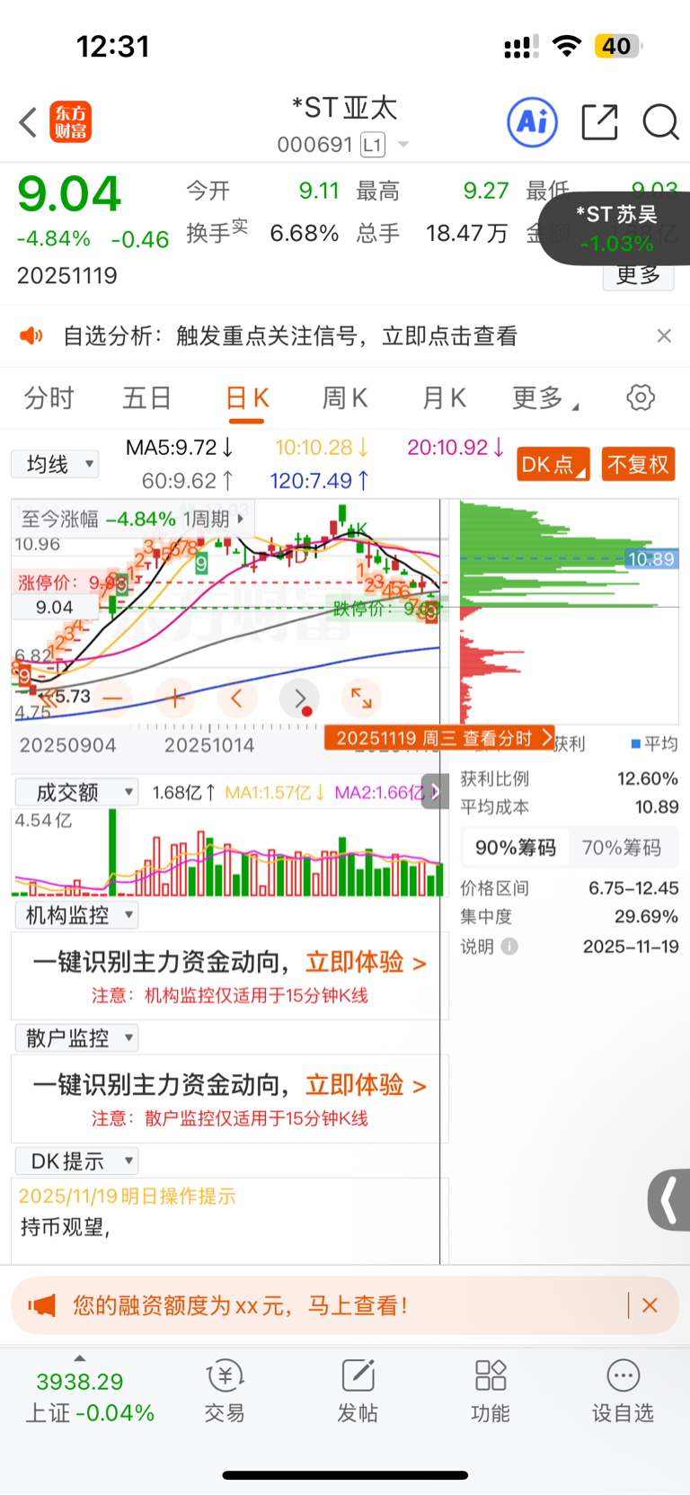 $*ST亚太(SZ000691)$ 今天是神奇九转的一天,明天买或许性价比更高,但是底部获利筹码接近出清。