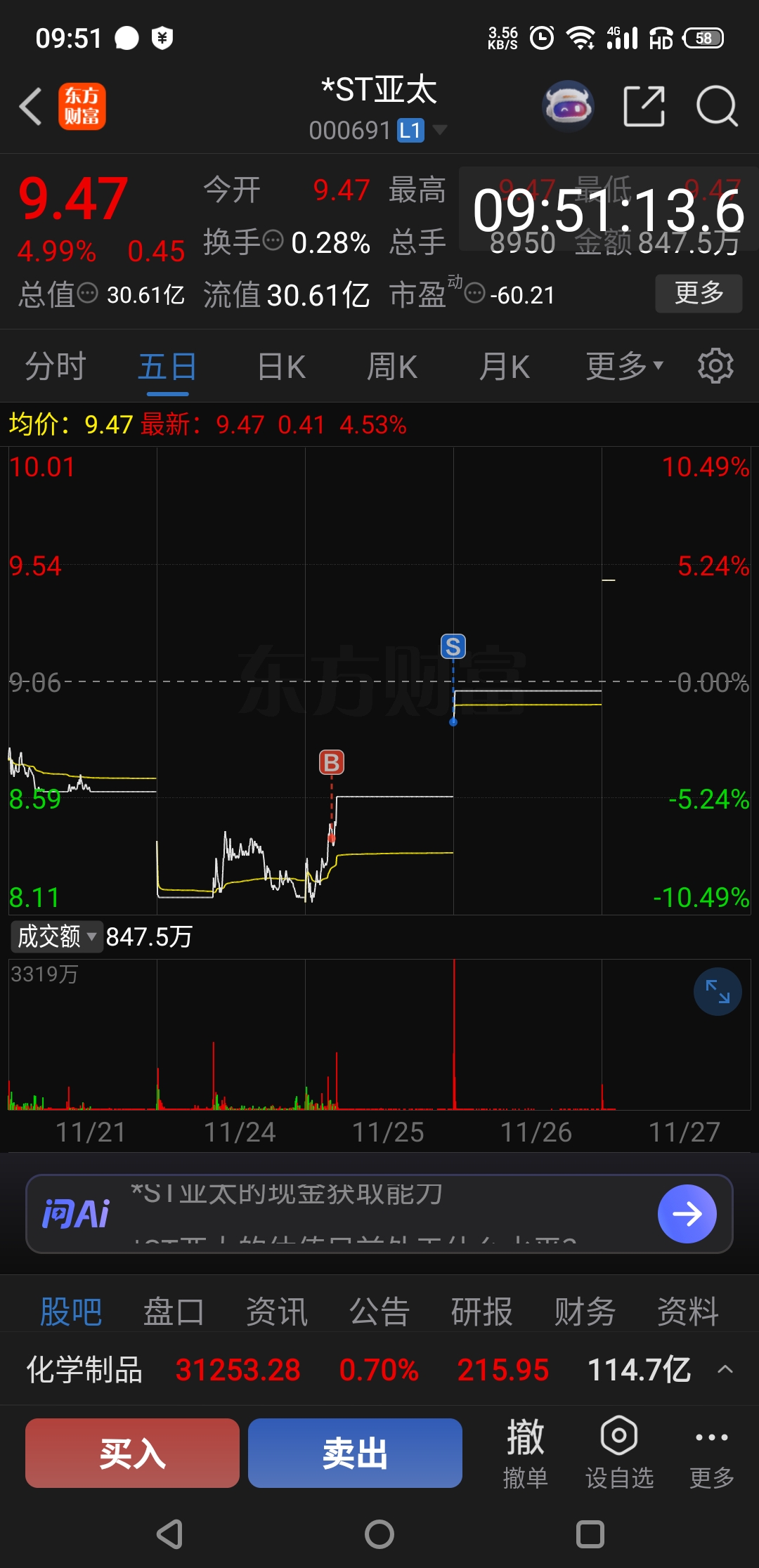 $*ST亚太(SZ000691)$ 让我好好哭一会儿!