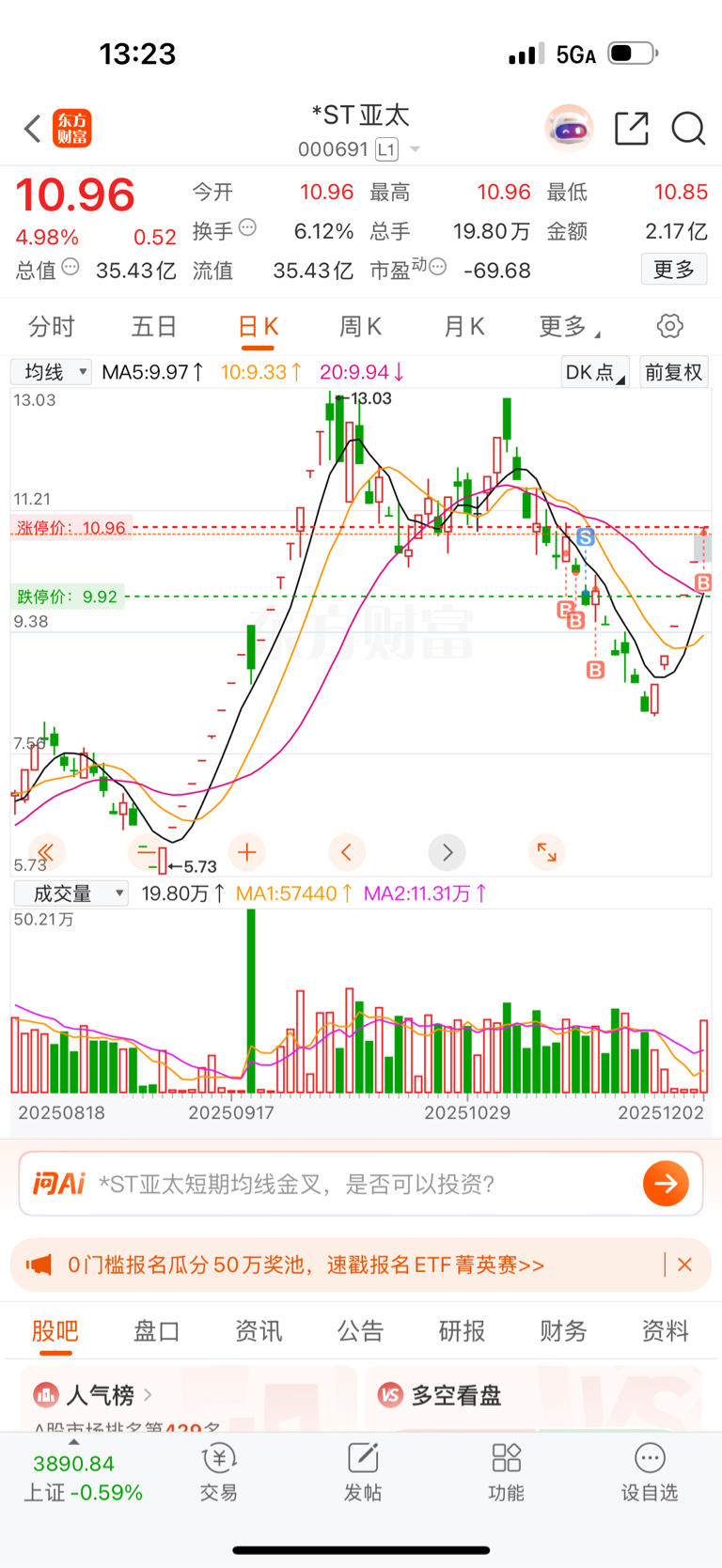 $*ST亚太(SZ000691)$ 有机会就进了,因为去年像去年景峰