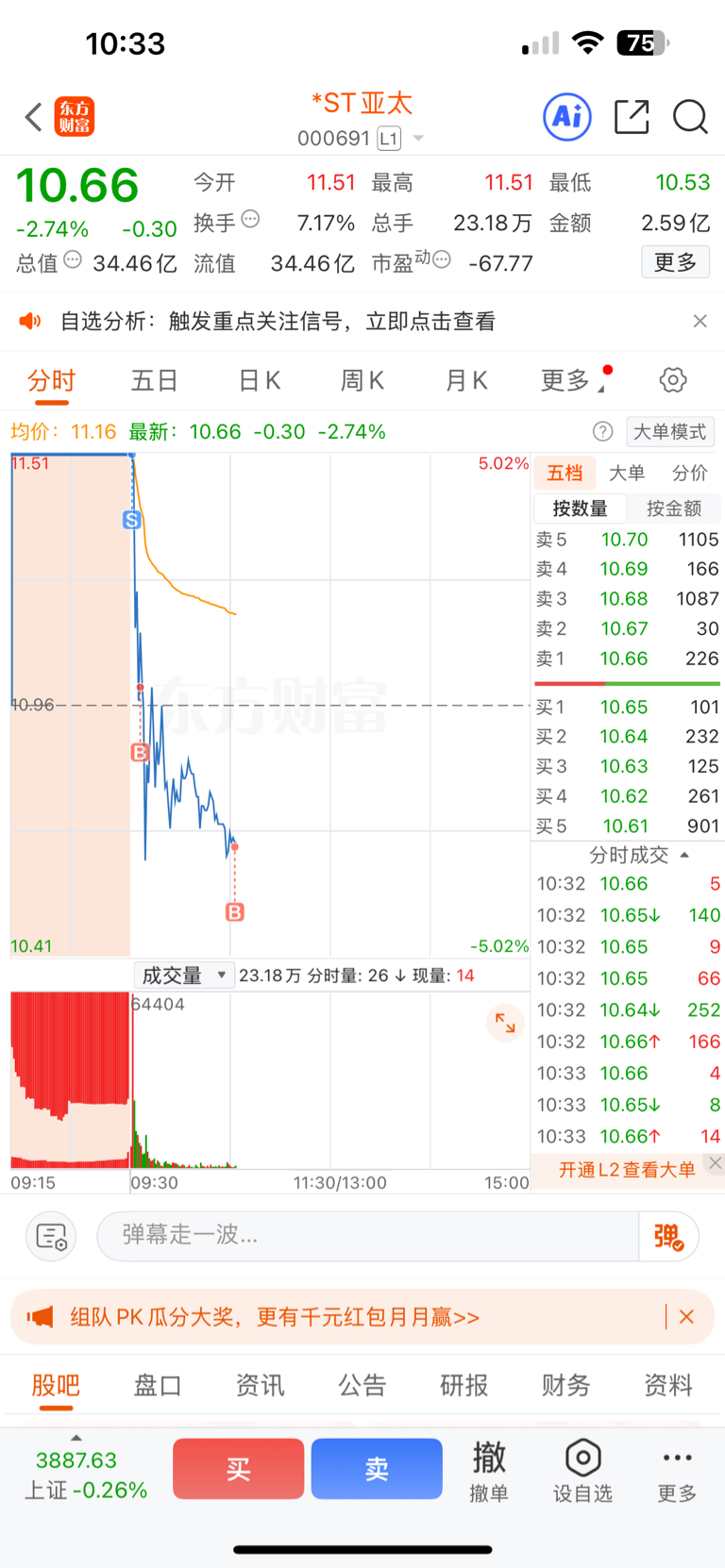 $*ST亚太(SZ000691)$ 今天就这样吧
