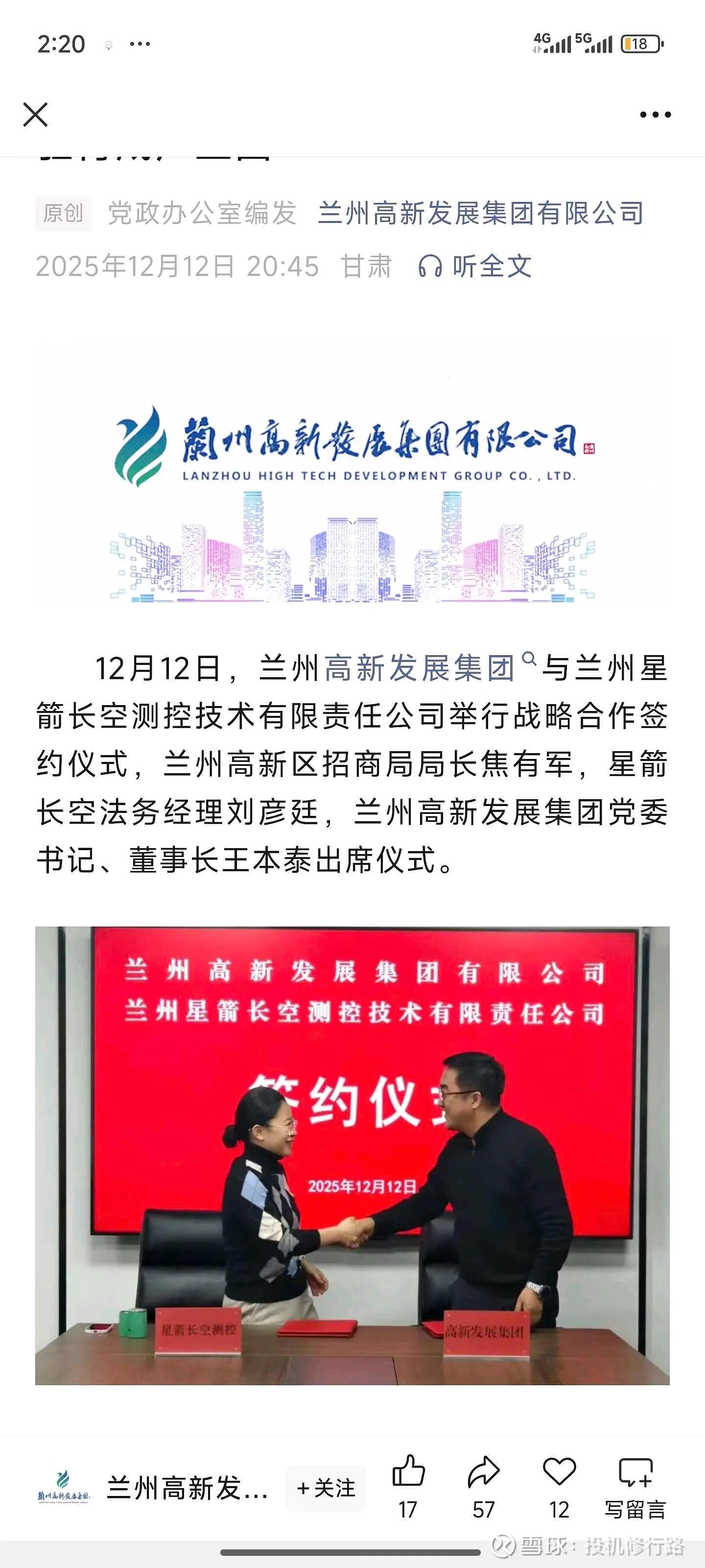 $*ST亚太(SZ000691)$ $ 恭喜兰州星箭正式入驻兰州高新区飞天创新港-科创育成产业园
