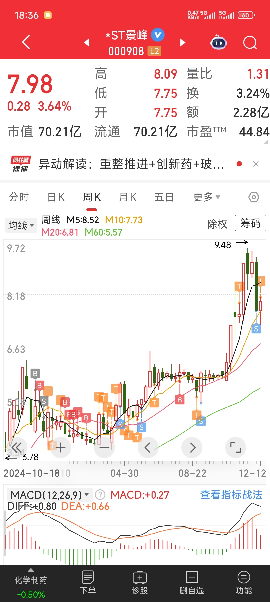 加油,坚持住!去年12月份5块买景峰跌到4块都坚持住了,何况这次只是利润回撤罢了
