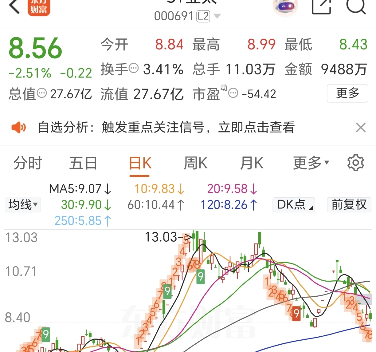 今天它也没有跟随中迪炸板跳水而跌停,显示外面的资金还是有买力的。明天震荡就好,不期待多强,散户们也不要乱砸乱跌呀。