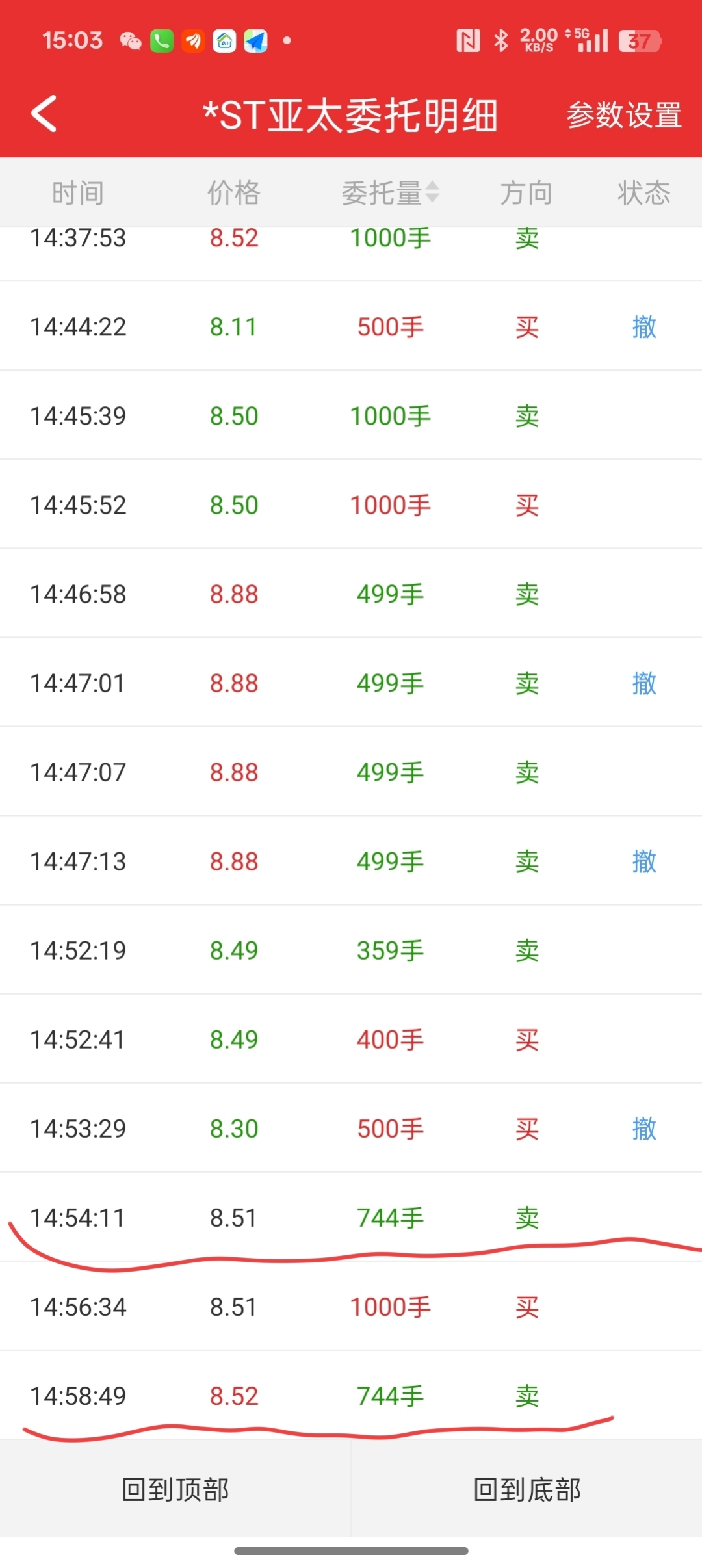 $*ST亚太(SZ000691)$ 这两笔744手是什么意思