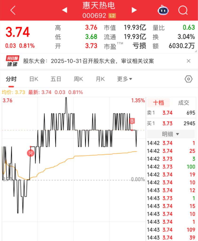 $惠天热电(SZ000692)$ 今天两个形态都挺不错,分别一个半仓梭了,下周有一个拉升就跑,吃口蚊子肉就行。尾盘梭哈早盘卖,积少成多,细水长流