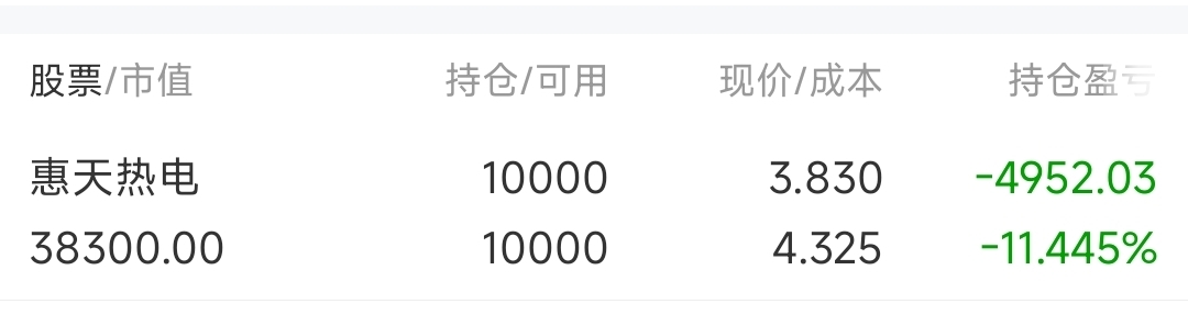 $惠天热电(SZ000692)$ 留1万扎头不再动,什么时间涨到6元再卖,叠到3.5再加仓!