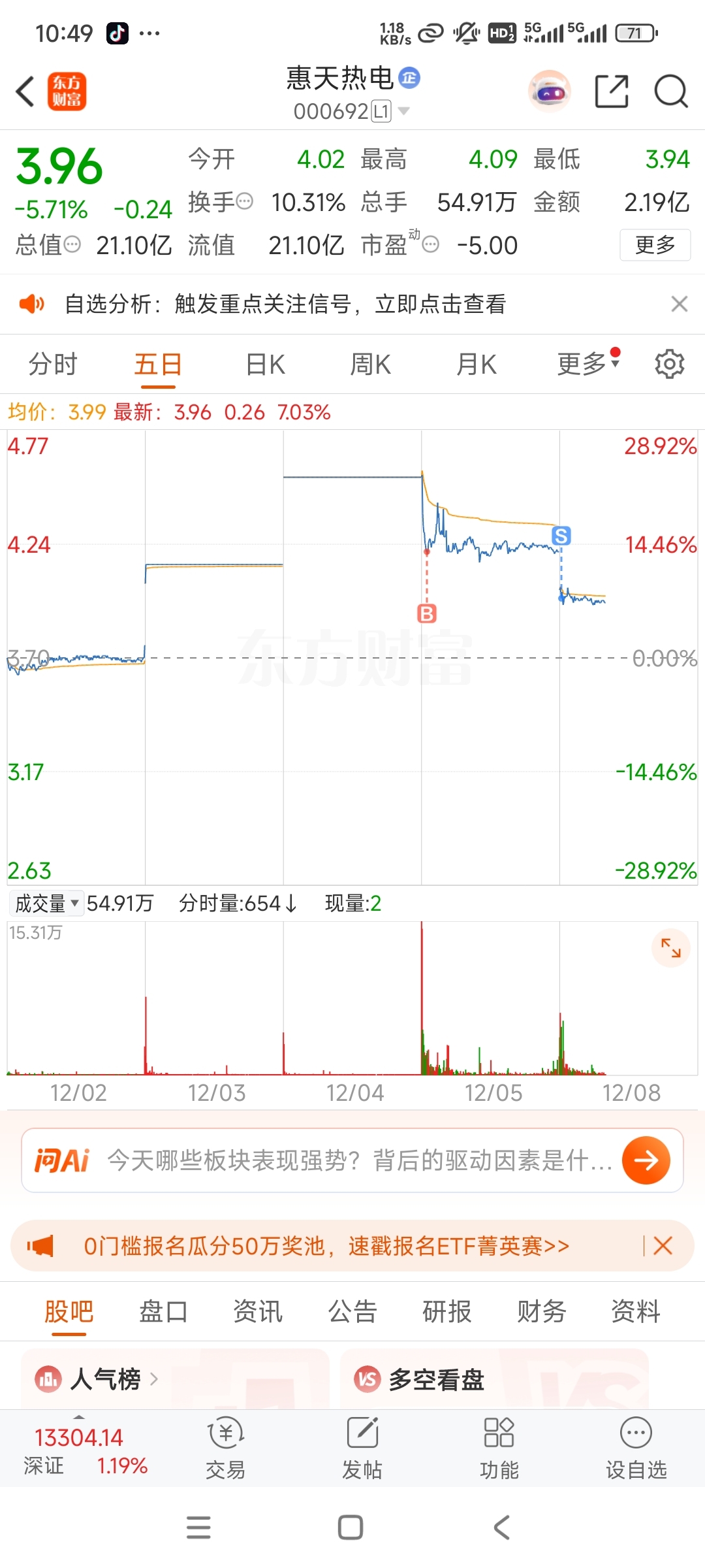 $惠天热电(SZ000692)$ 开盘就跑了的,经验告诉我10次有9次得跑快点,认栽