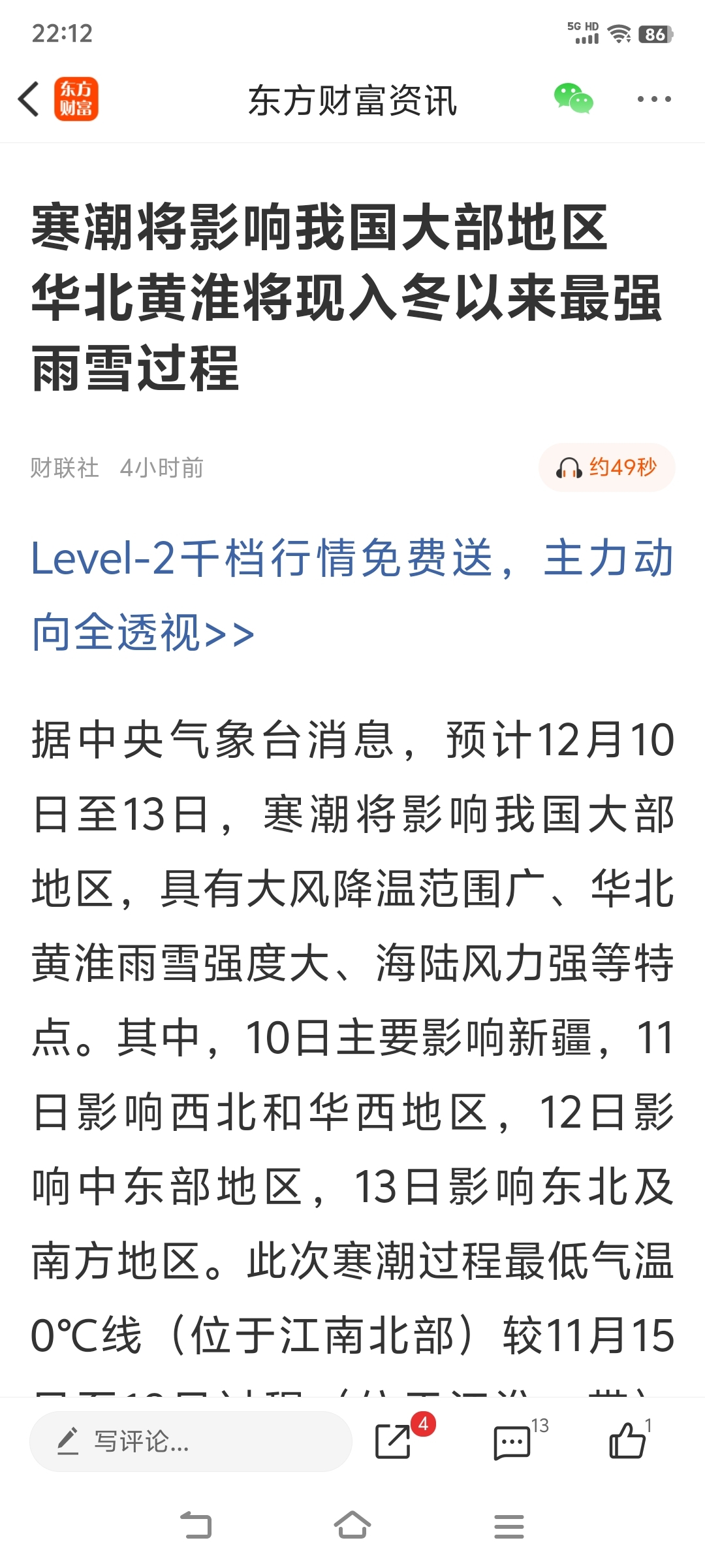 $惠天热电(SZ000692)$ 利好来了,天气越冷越涨!