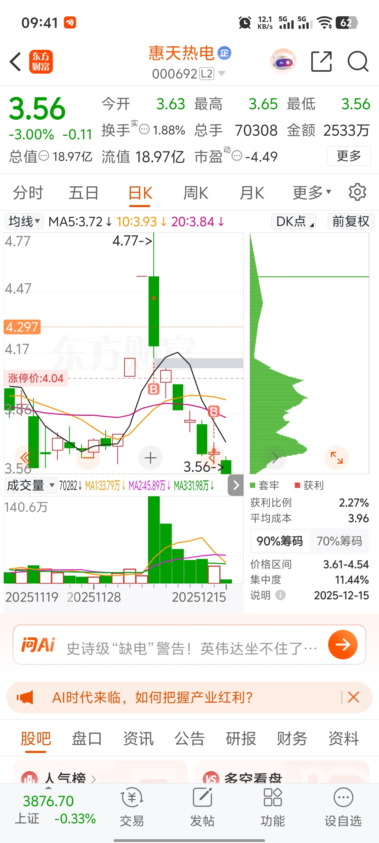 $惠天热电(SZ000692)$ 跌起来没完没了了