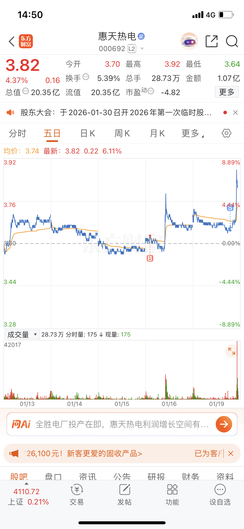 $惠天热电(SZ000692)$ 靠,卖了就涨