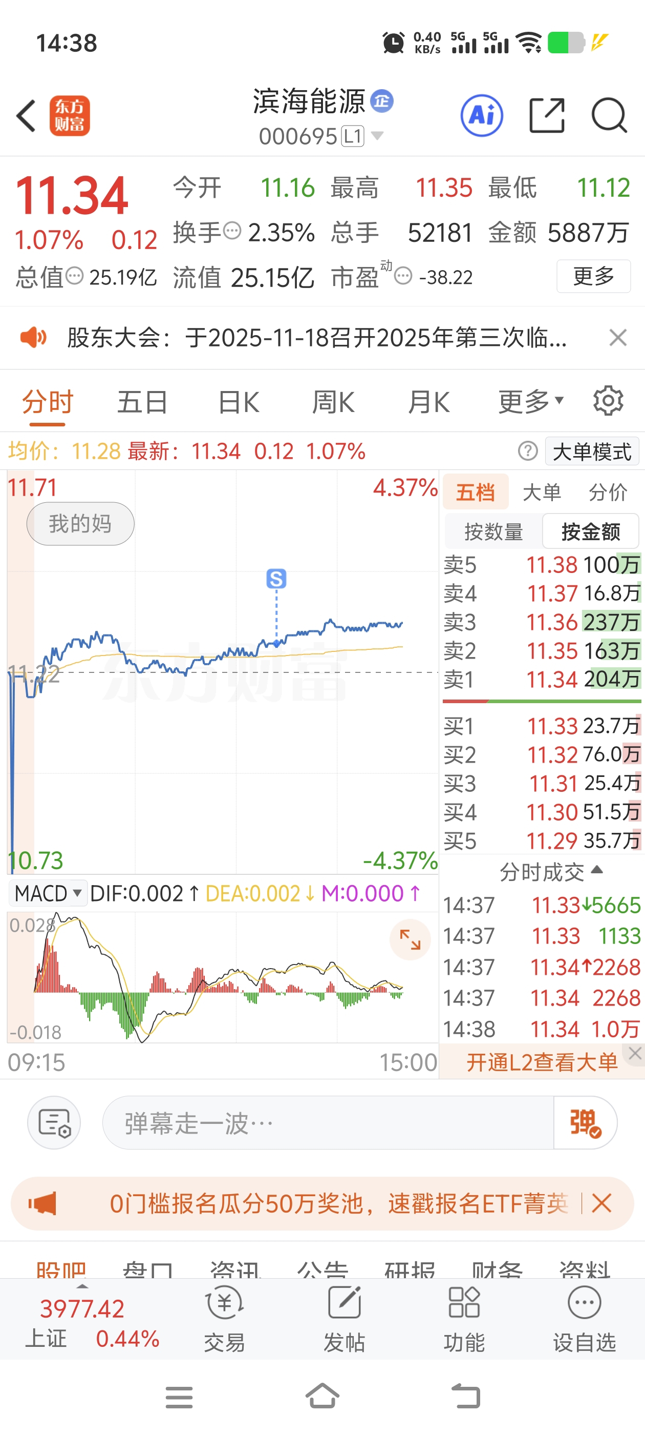 $滨海能源(SZ000695)$ 我的妈,又被主力涮了!