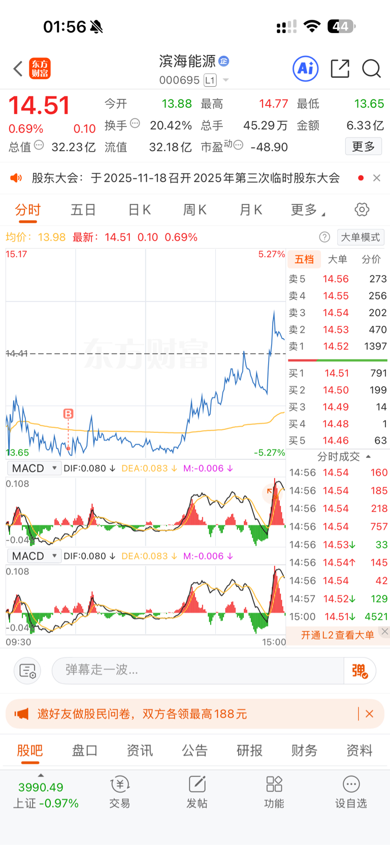 $滨海能源(SZ000695)$ 我不怕,跌停亏四个点,今天抄底赚了5.5个点