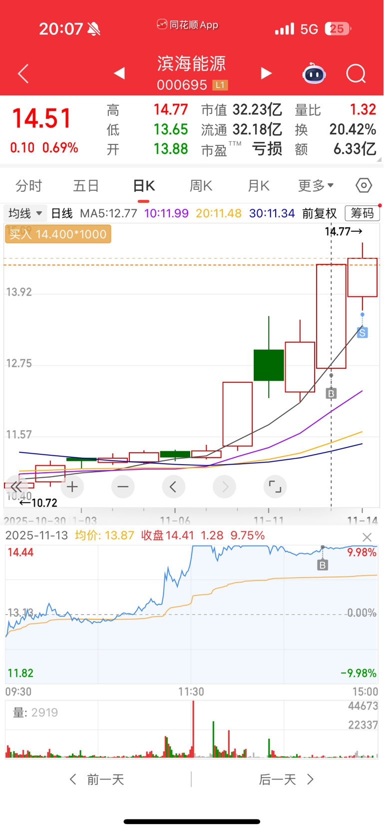 $滨海能源(SZ000695)$ 昨天打板,尾盘卖了