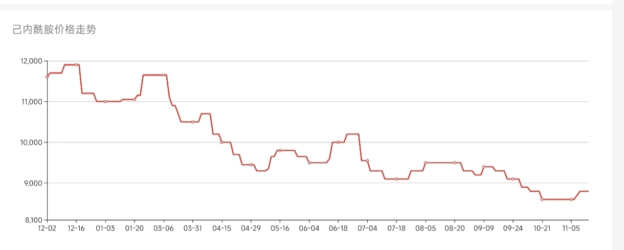 $滨海能源(SZ000695)$ 己内酰胺2025年价格走势图。终止收购一个亏货,是利好还是利空?主力资金比我们散户聪明吧。