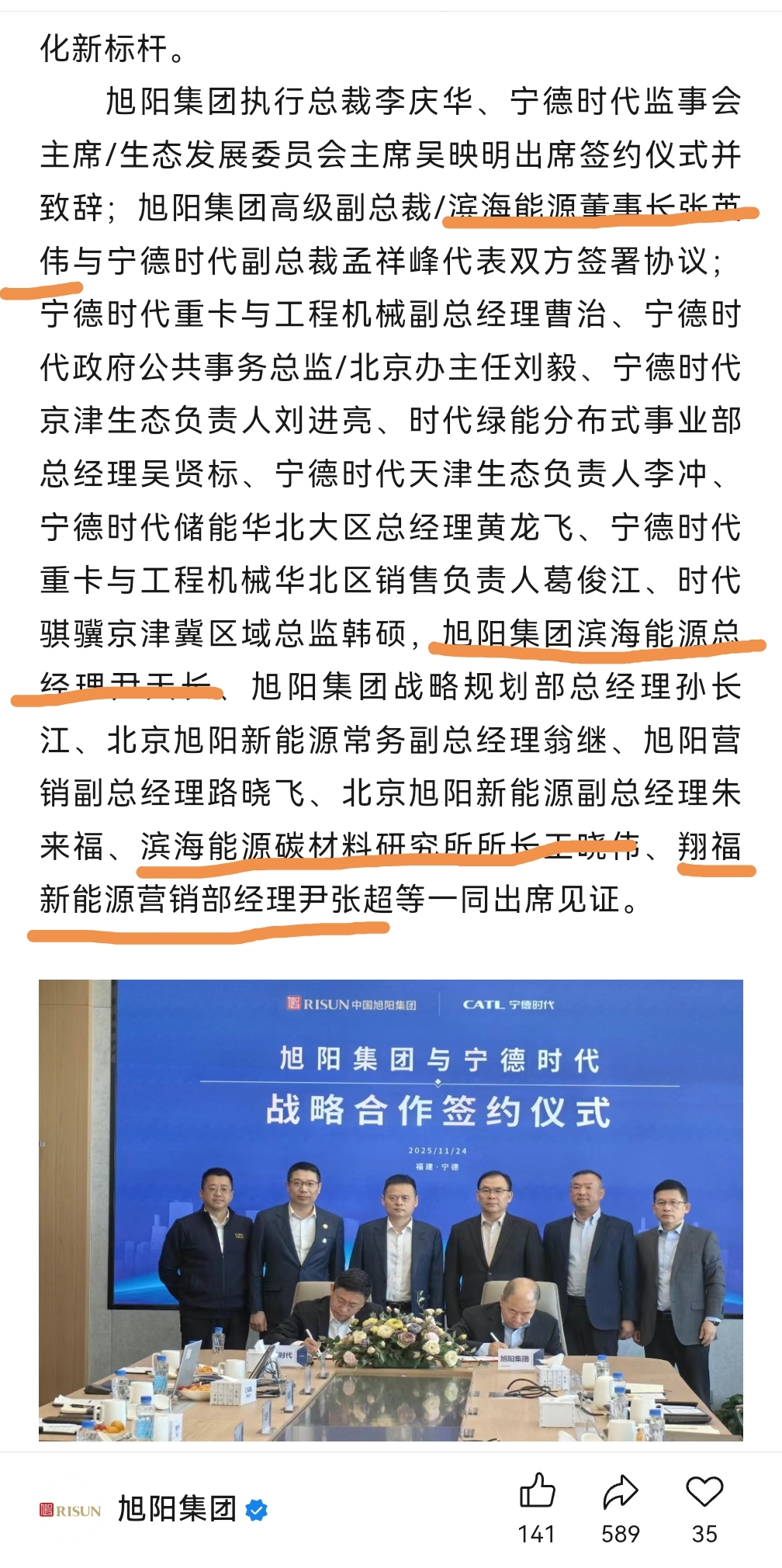 $滨海能源(SZ000695)$ 与宁德时代的签约,滨海能源的核心人物都去了,协议核心内容之一就卖负极给宁德。