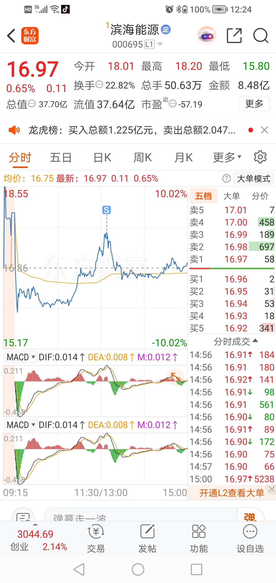 $滨海能源(SZ000695)$ 砸盘了