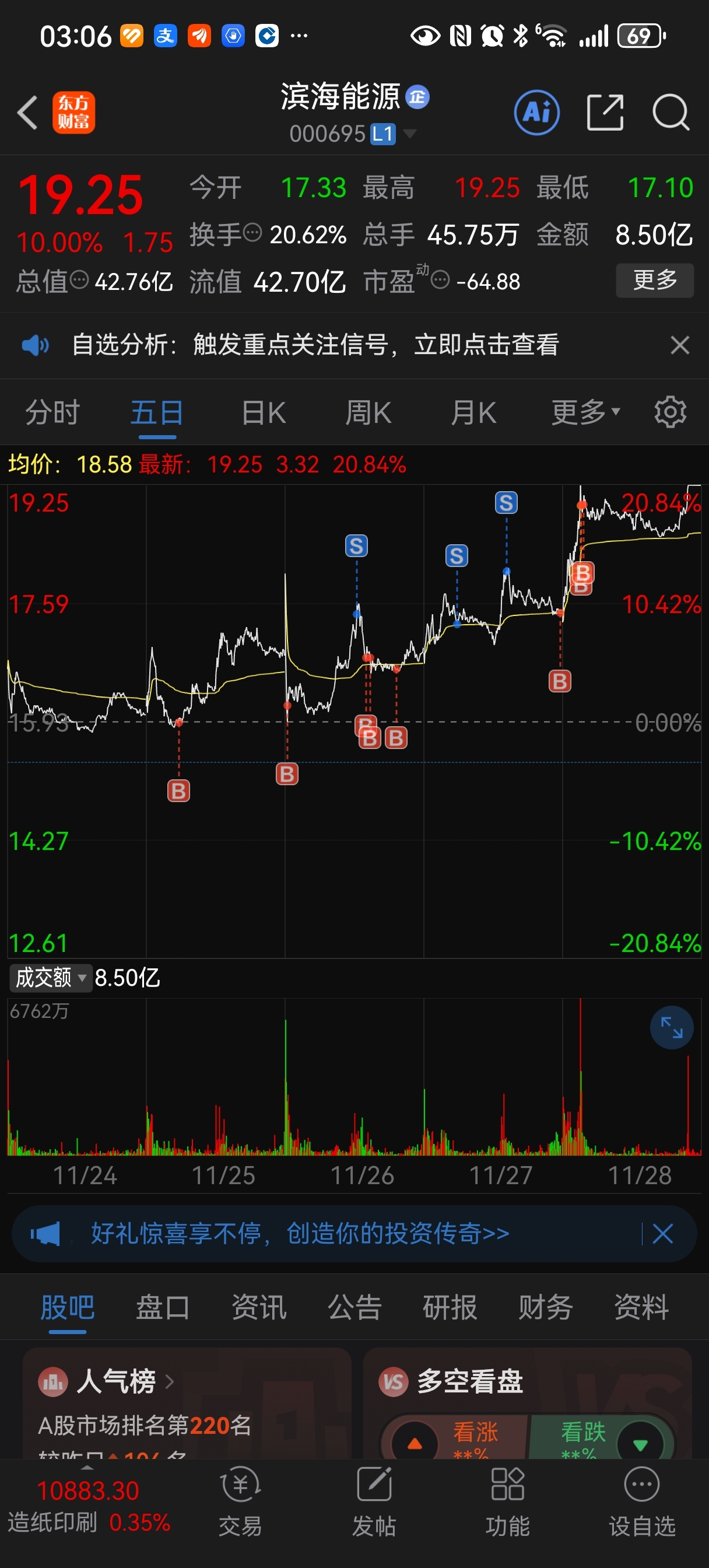 $滨海能源(SZ000695)$ 今天加仓
