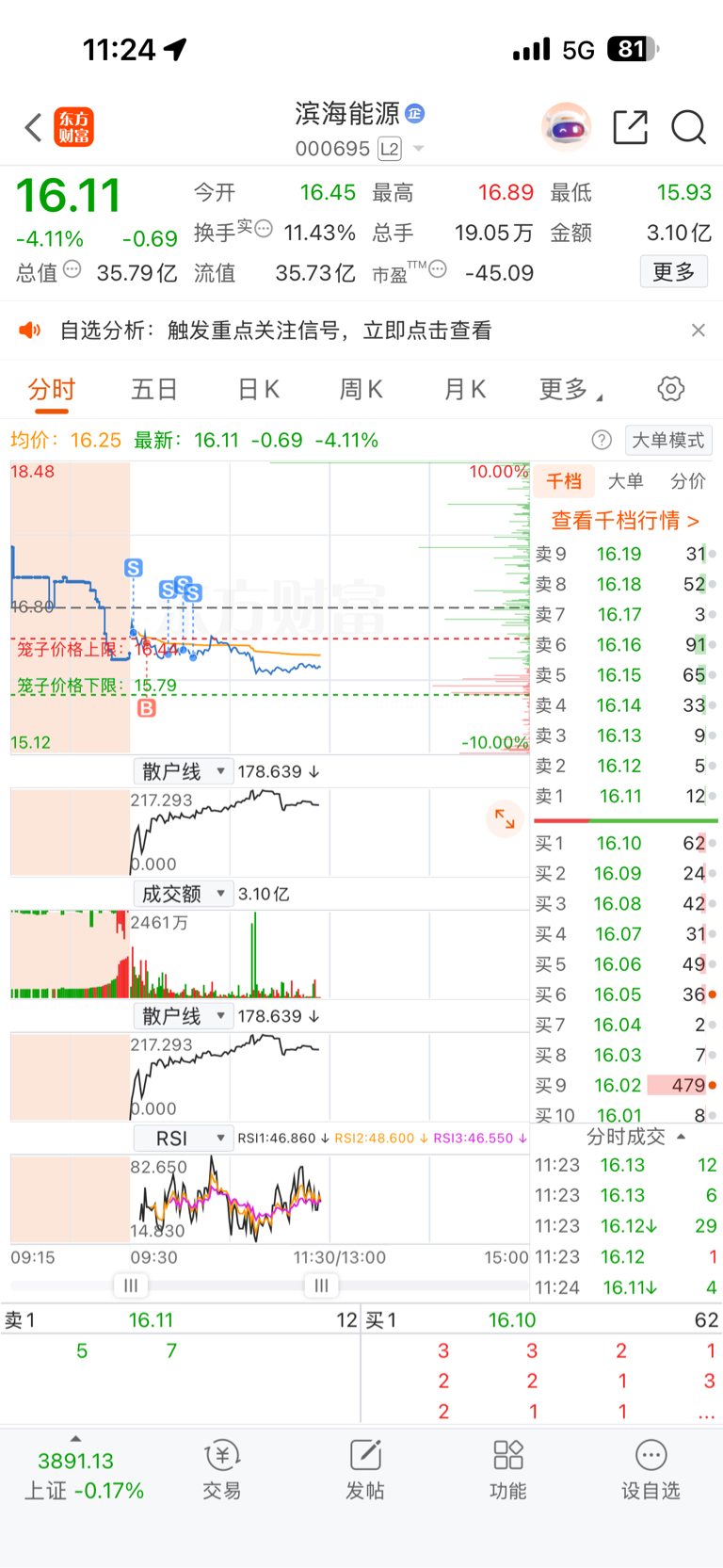 $滨海能源(SZ000695)$ 拜拜,去航天智装和招标股份了,留下的发财,明后天再来