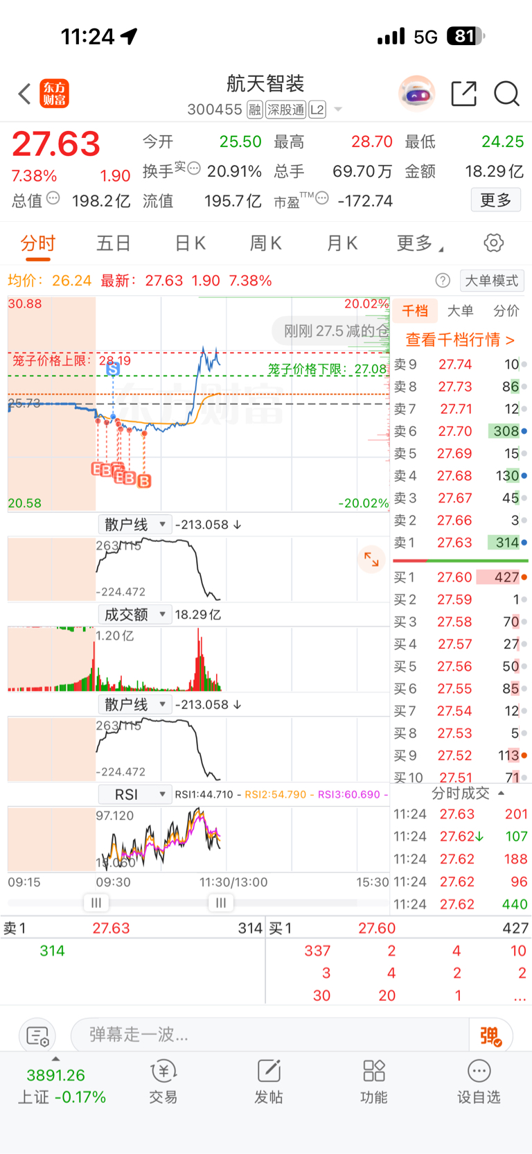 拜拜,去航天智装和招标股份了,留下的发财,明后天再来