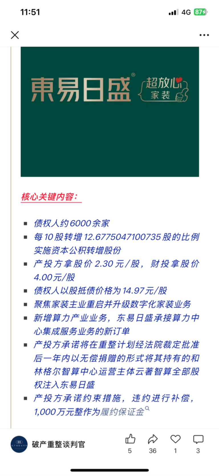 $*ST炼石(SZ000697)$ 看看东易的债抵股好了 做装修都这价 更不说做发动机单晶叶片的了
