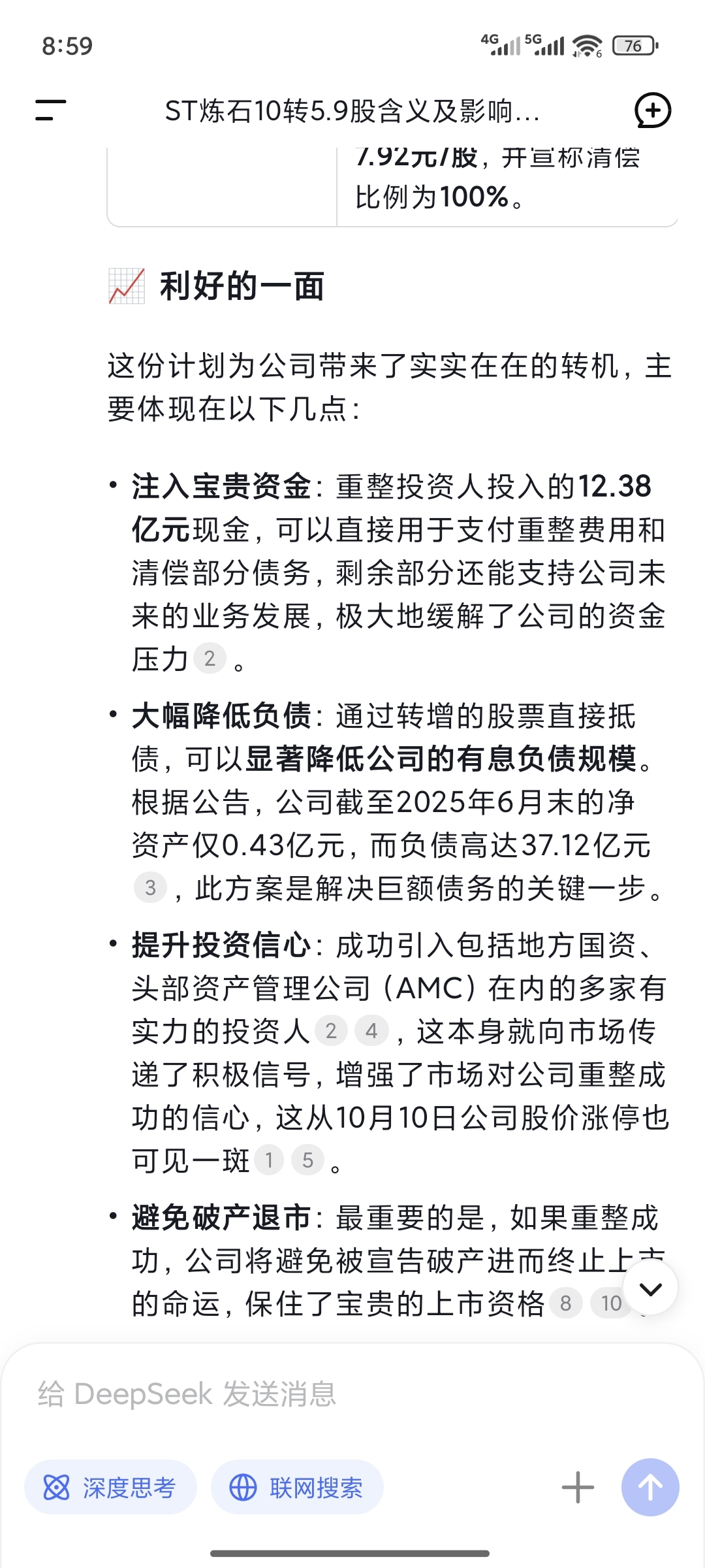$*ST炼石(SZ000697)$ 六月净资产才0.43亿直接划掉37亿债务,还利空还跌停,投资人拿出来那么多钱让人家多挣点你们还不乐意了,买了十万八万的股票担心个叽叽
