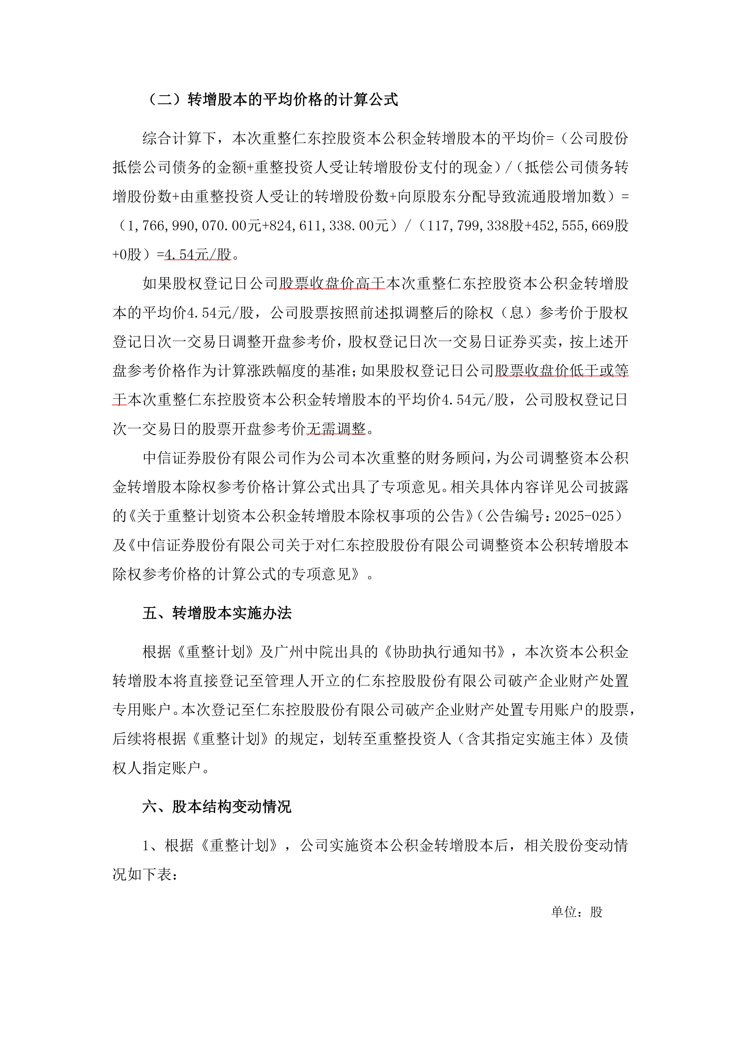 *ST仁东转增股本事项实施的公告 - 中小股东3月13日直接账面损失7%
