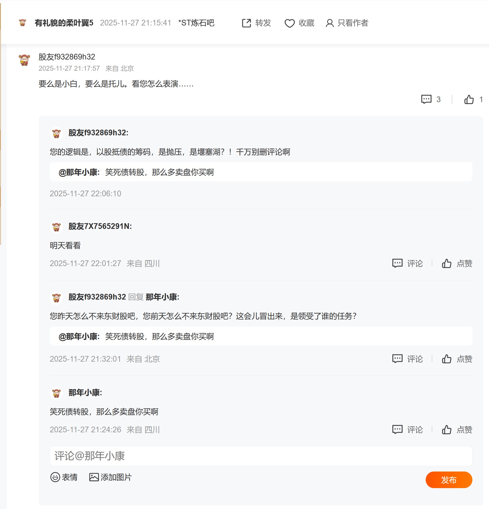 温馨提示: 1.根据《证券法》规定,禁止编造、传播虚假信息或者误导性信息,扰乱证券市场;2.用户在本社区发表的所有资料、言论等仅代表个人观点,与本网站立场无关,不对您构成任何投资建议。用户应基于自己的独立判断,自行决定证券投资并承担相应风险。《东方财富社区管理规定》